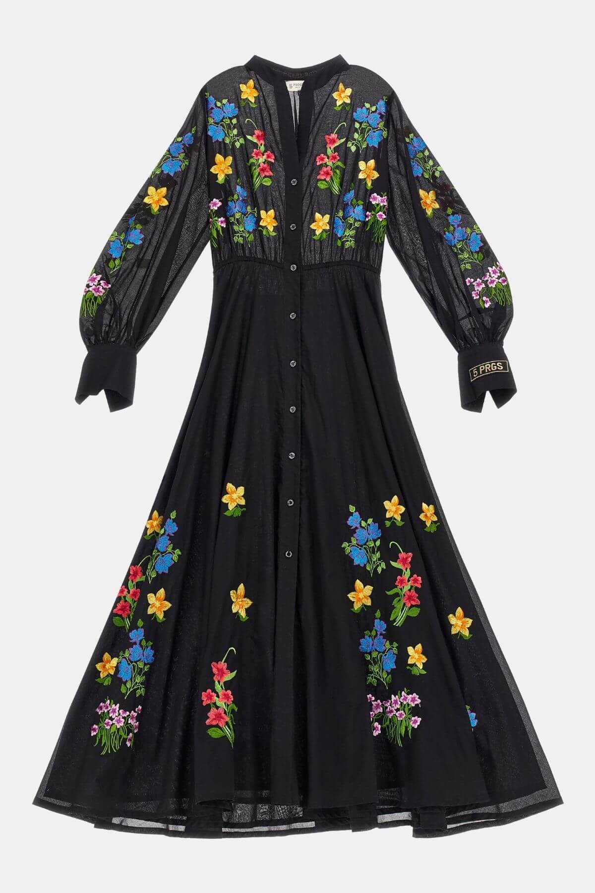 This dress is designed with a relaxed fit through the body and a gently defined waist for a flattering silhouette. The lightweight, cotton fabric drapes softly, while the button-front closure and long sleeves with cuffs add structure. Finished with an all-over floral print, the dress combines comfort with elegant, eye-catching details.