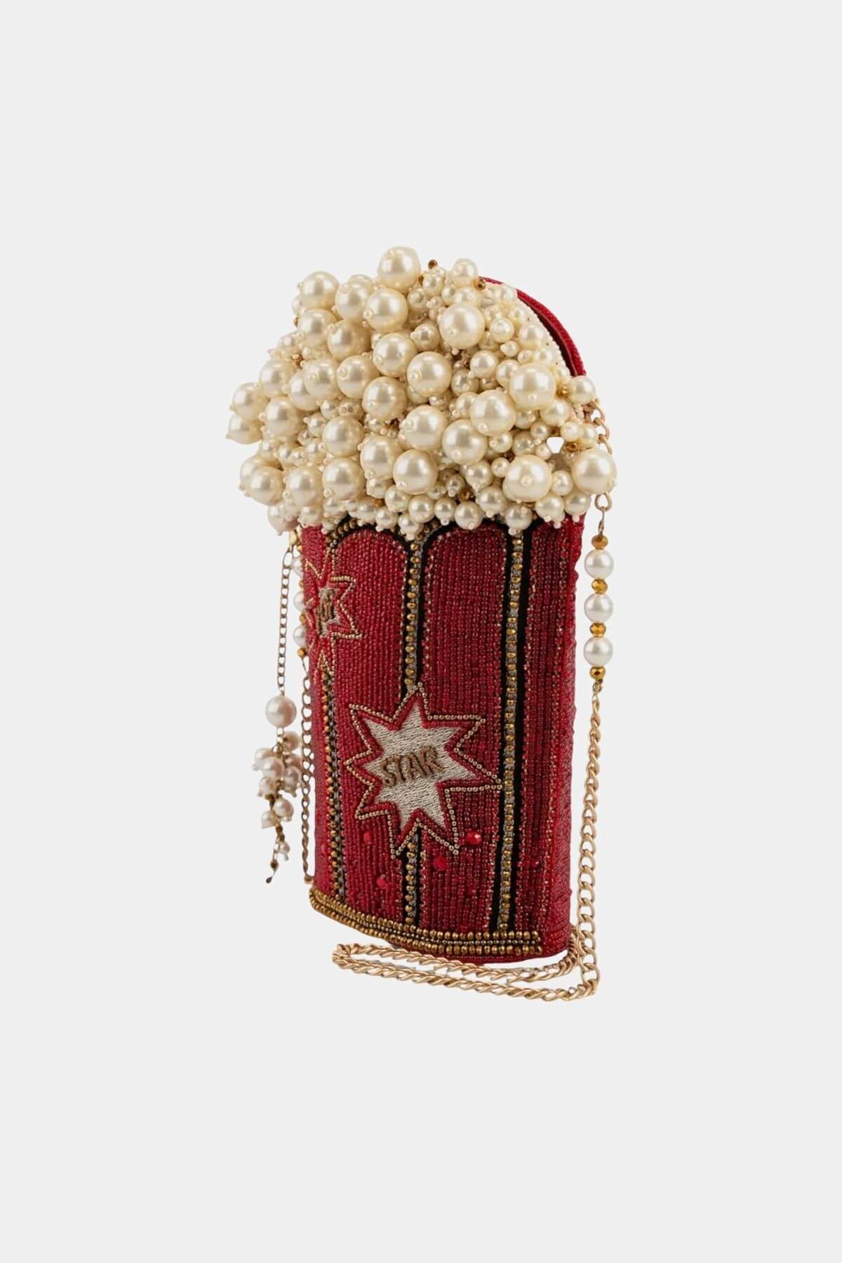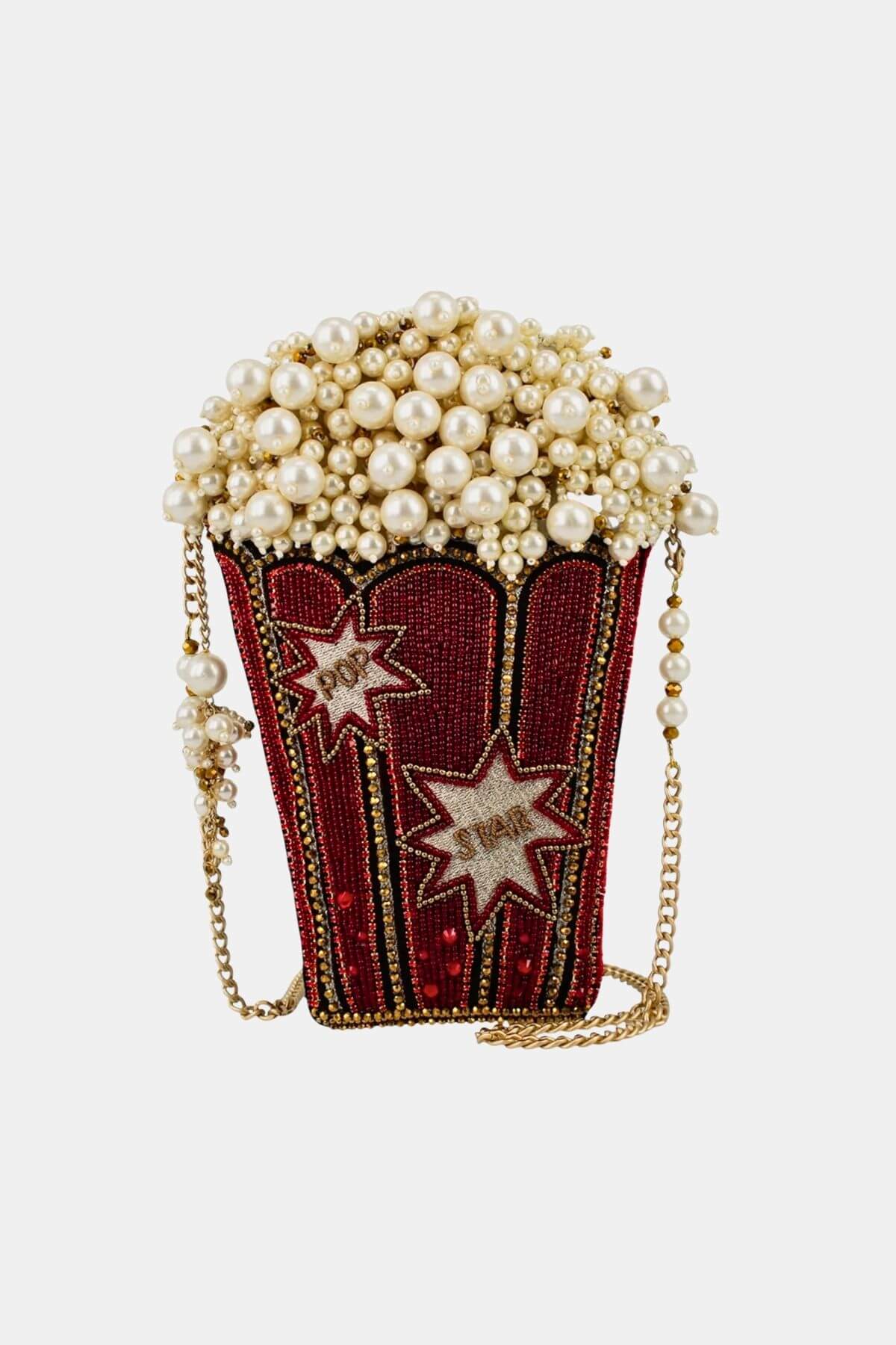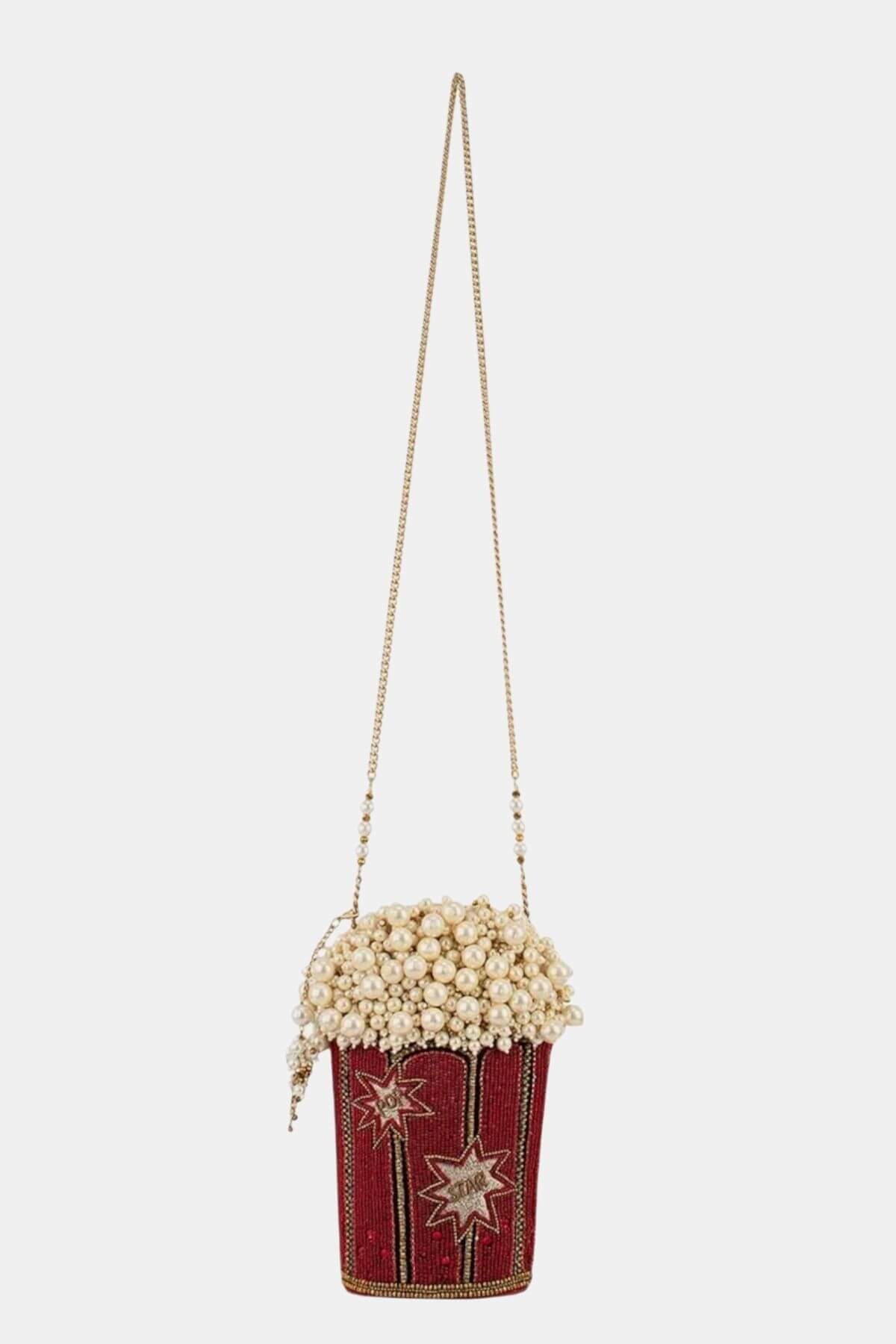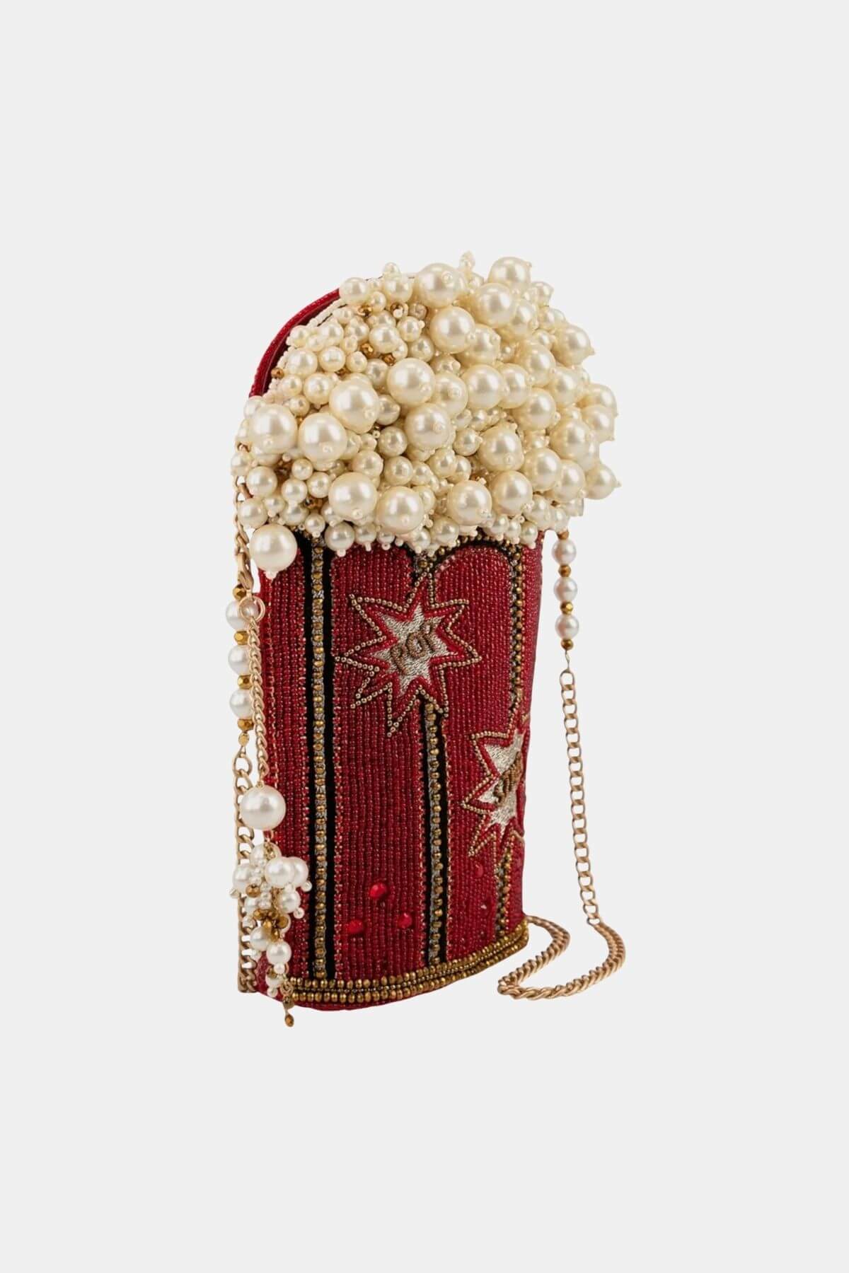 Pop, sparkle, glamour! Movie night delivers true red-carpet vibes with a buttery twist. Filled with pearl-like “popcorn” and retro charm, this bag is your ultimate scene-stealer, whether you’re at the cinema or just dressing like the star you are.