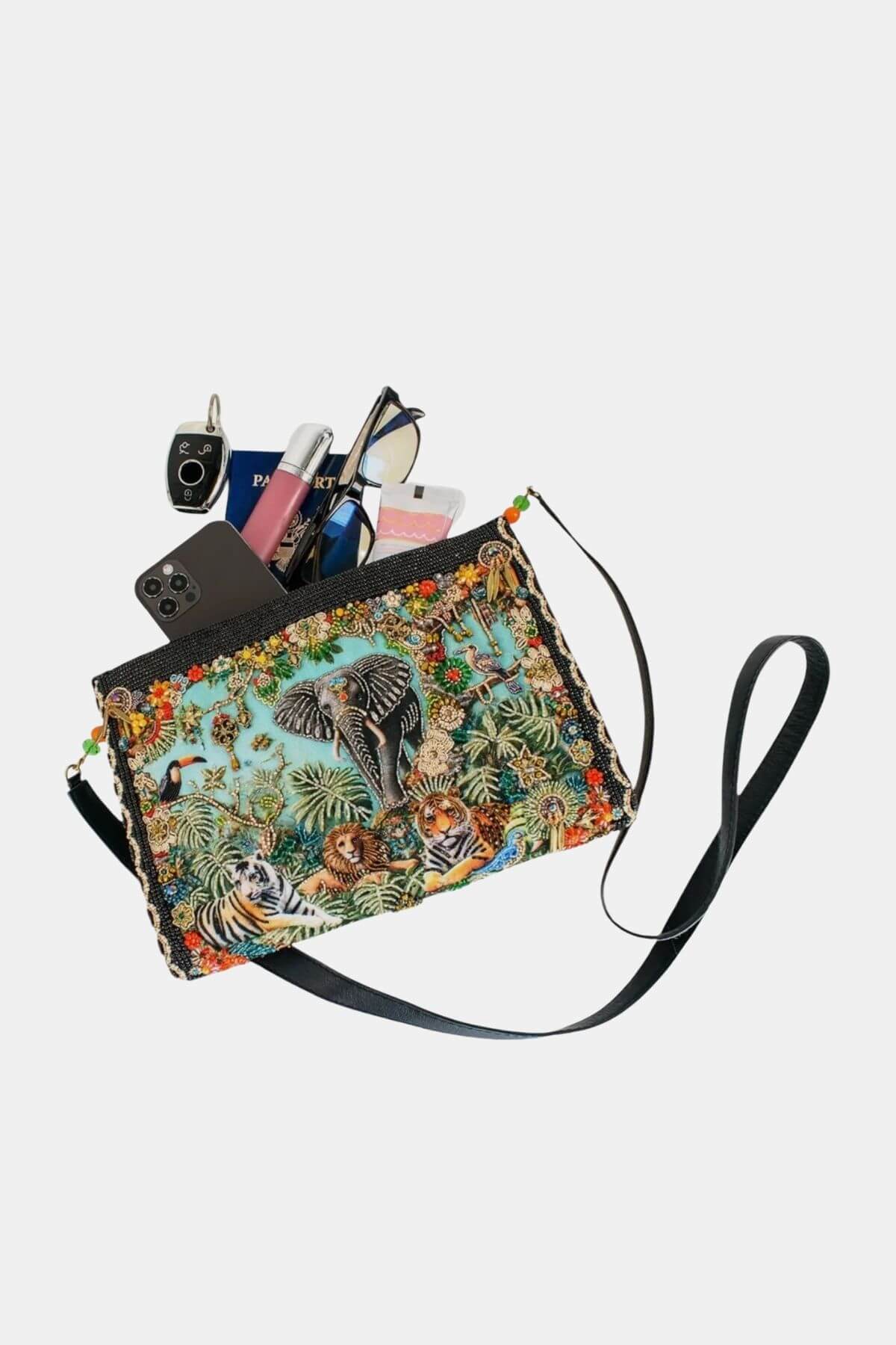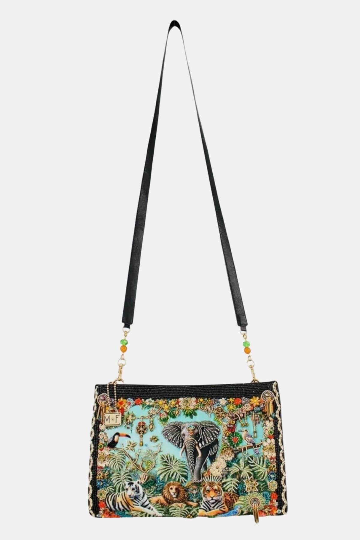 Wild Kingdom Elephant Embroided Crossbody Handbag