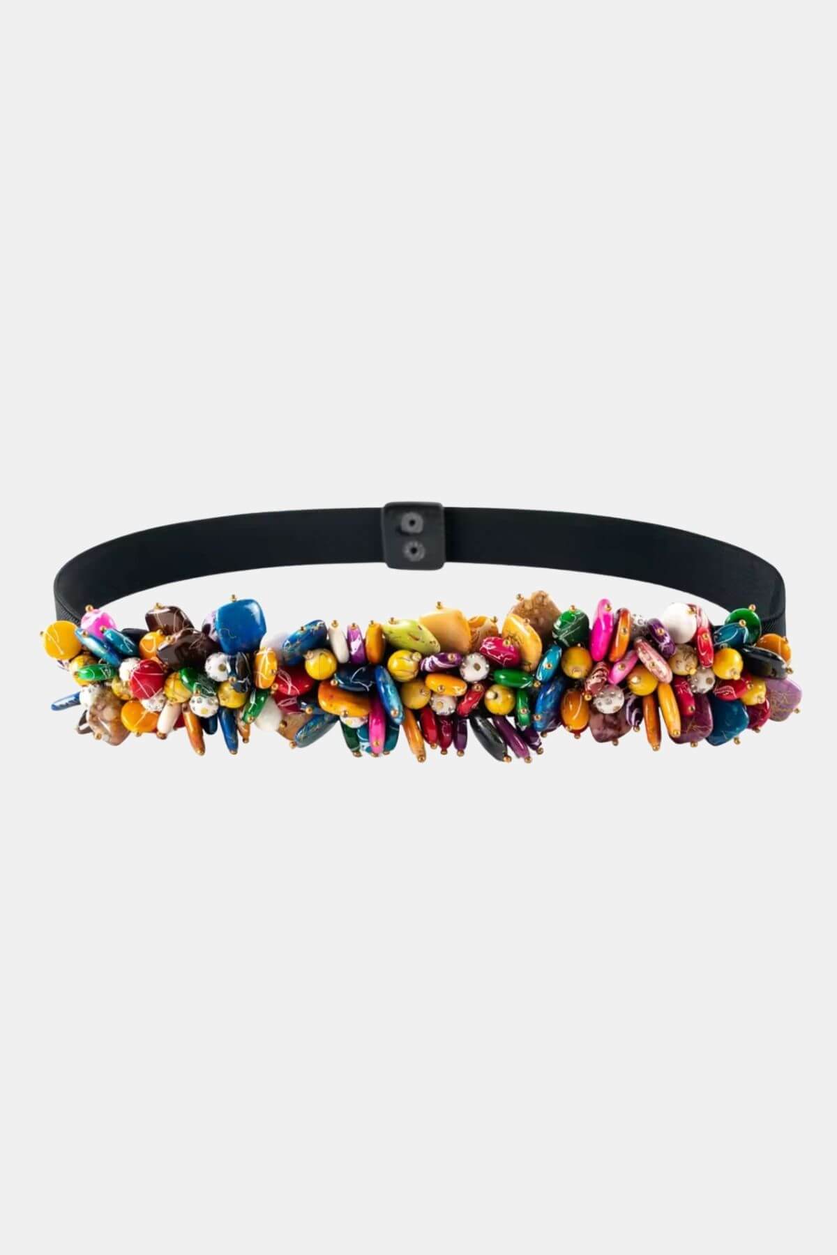 1. Material: The gemstone on the belt are made of glass alloy, stretchable elastic belt.