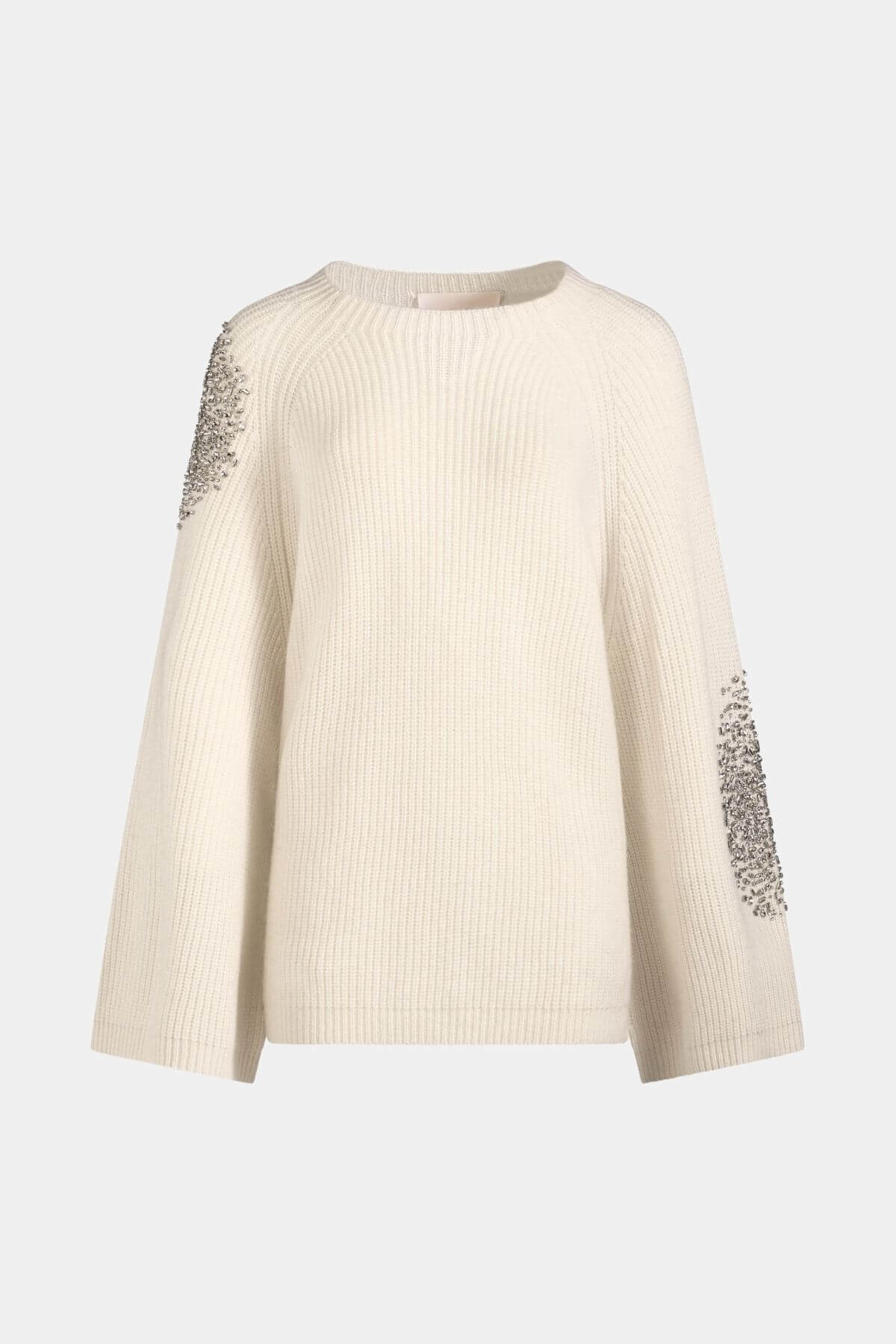 Oversized ivory ribbed knit sweater with relaxed silhouette.
