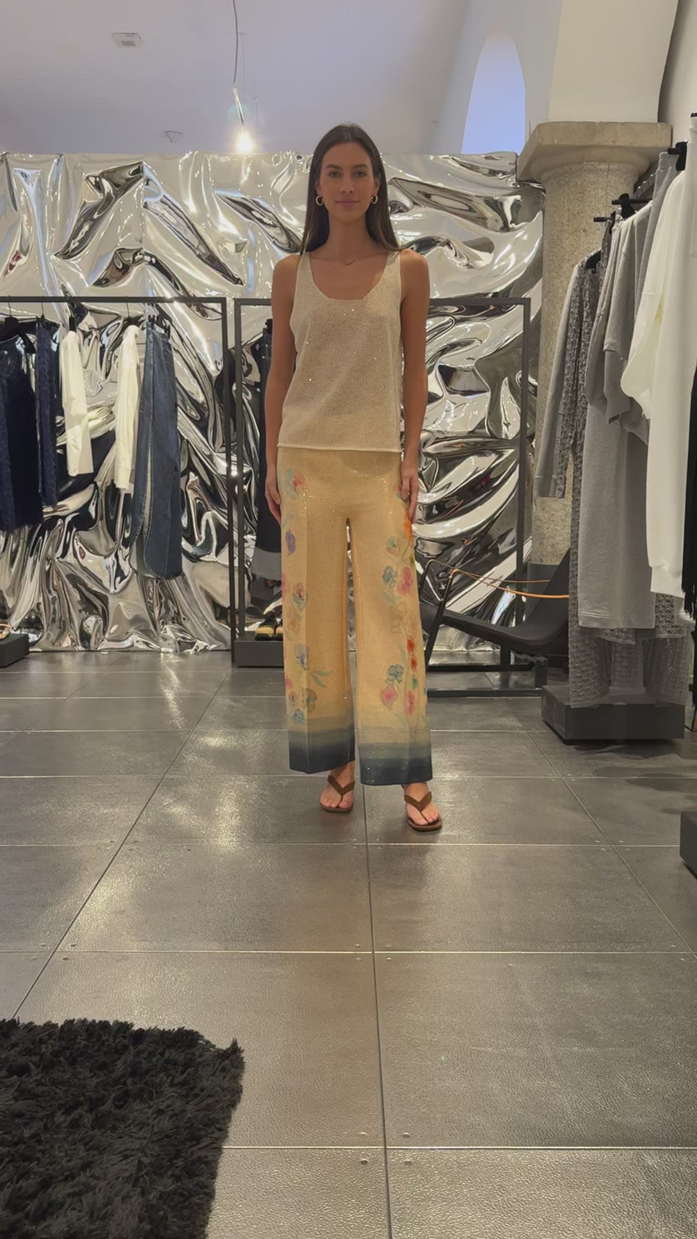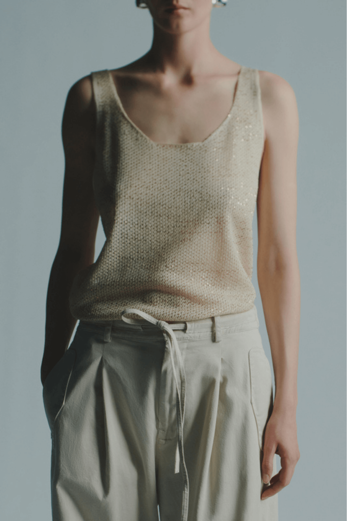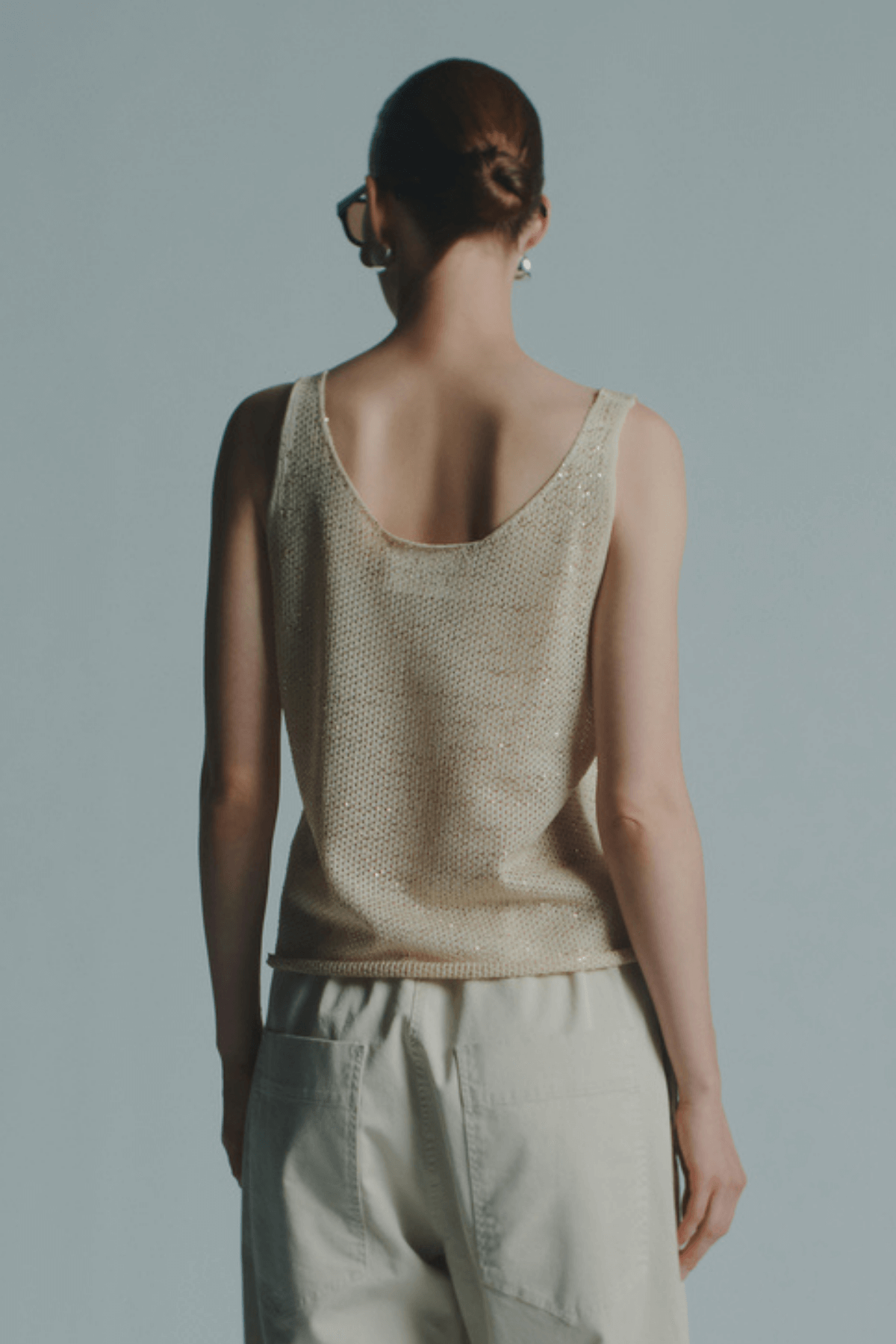 A refined sequin top designed in a slim fit with a flattering hip-length cut. Crafted in light knit fabric with a subtle shimmer of sequins, it offers a sleek silhouette that works effortlessly from day to evening.