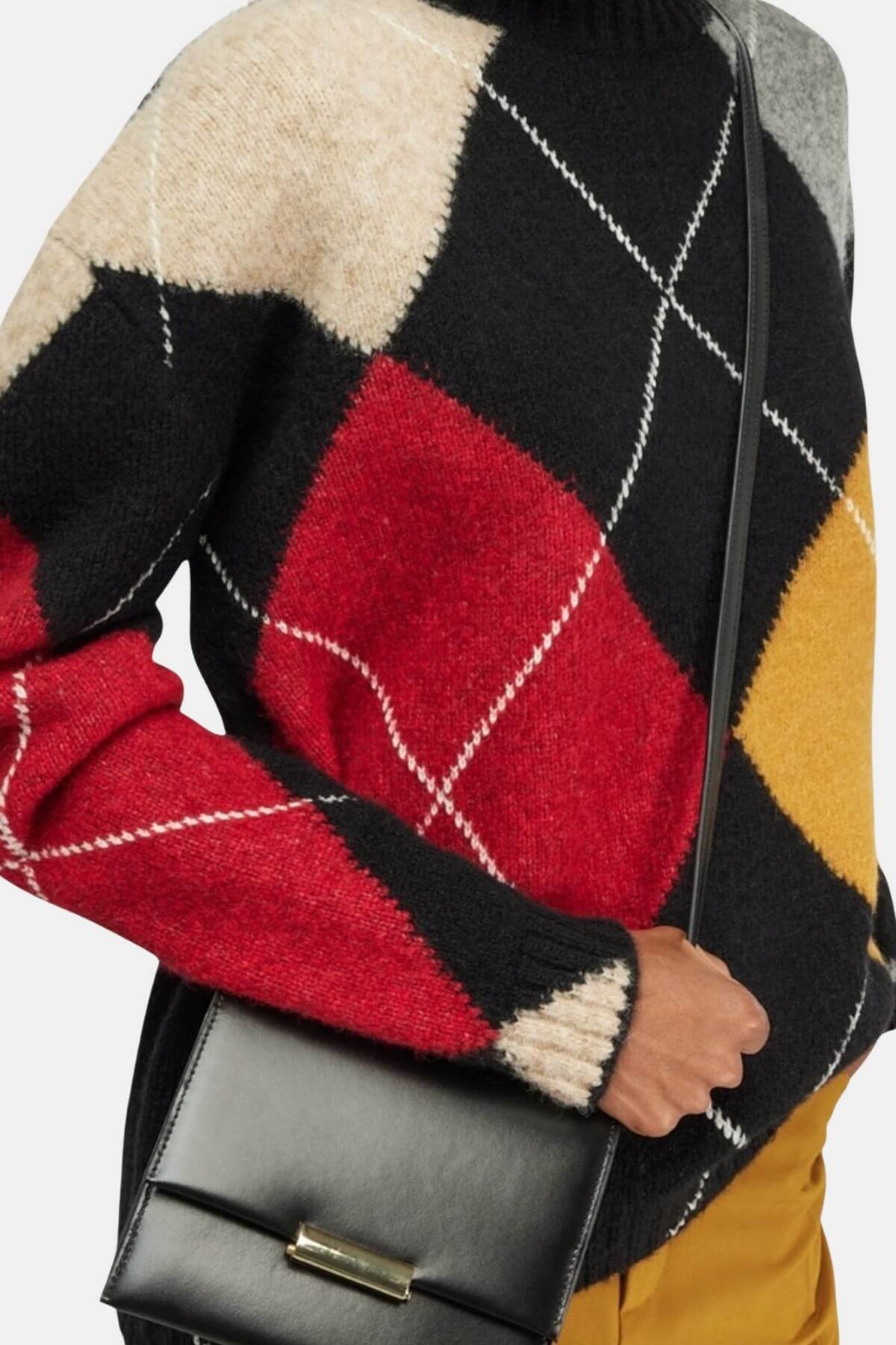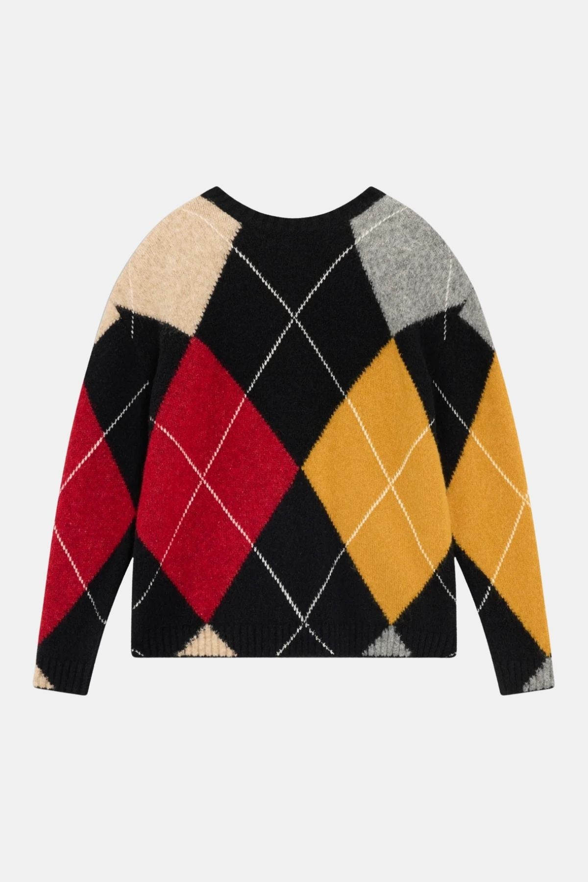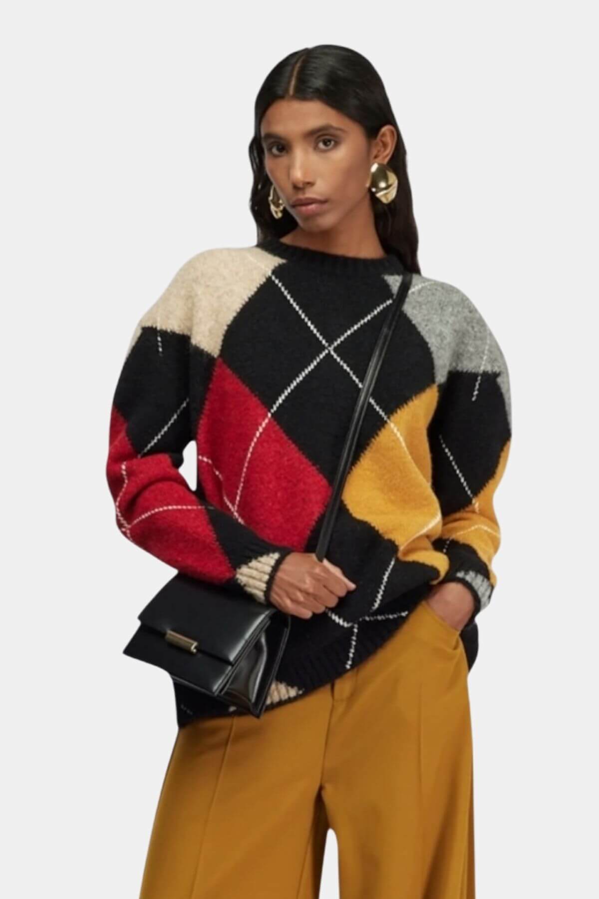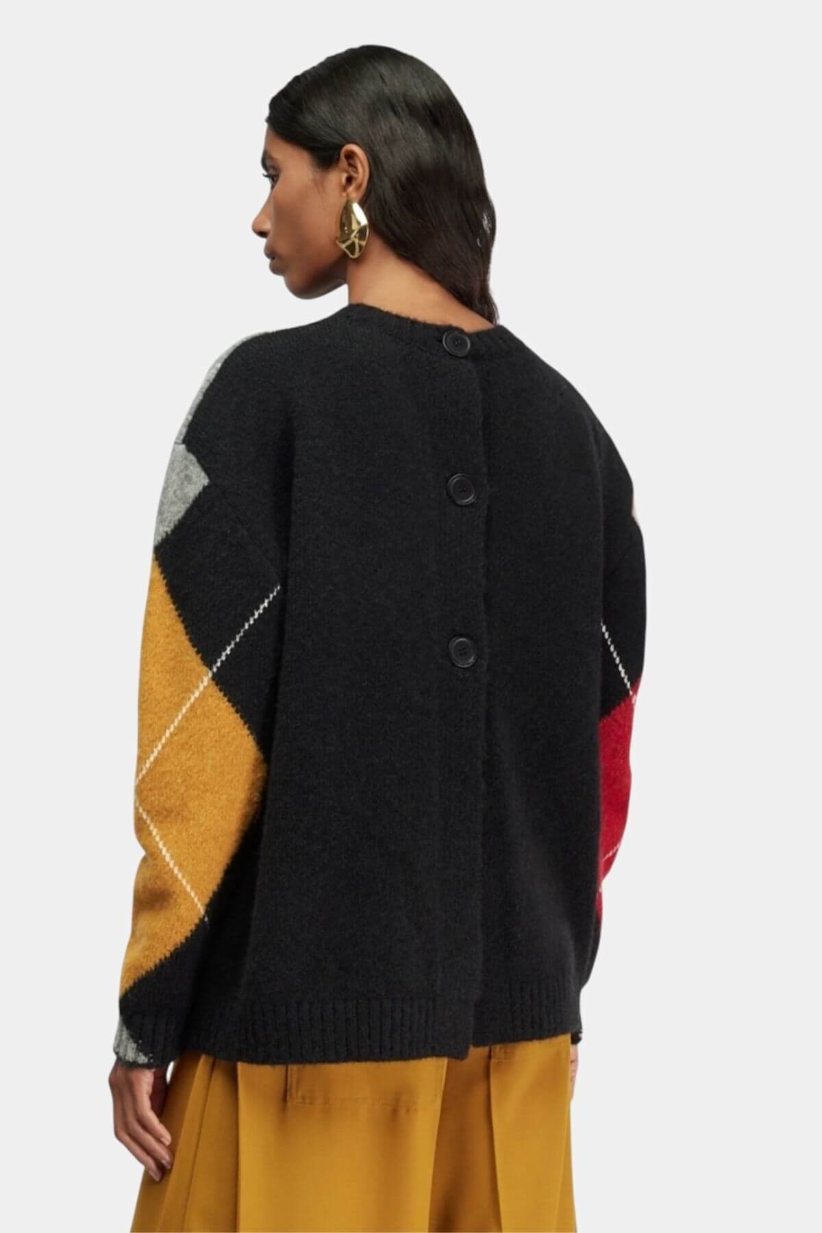 Look gorgeous in this semicouture Alpaca blend diamond-pattern sweater. The sweater has long sleeves, is hip length, and has an oversize fit.