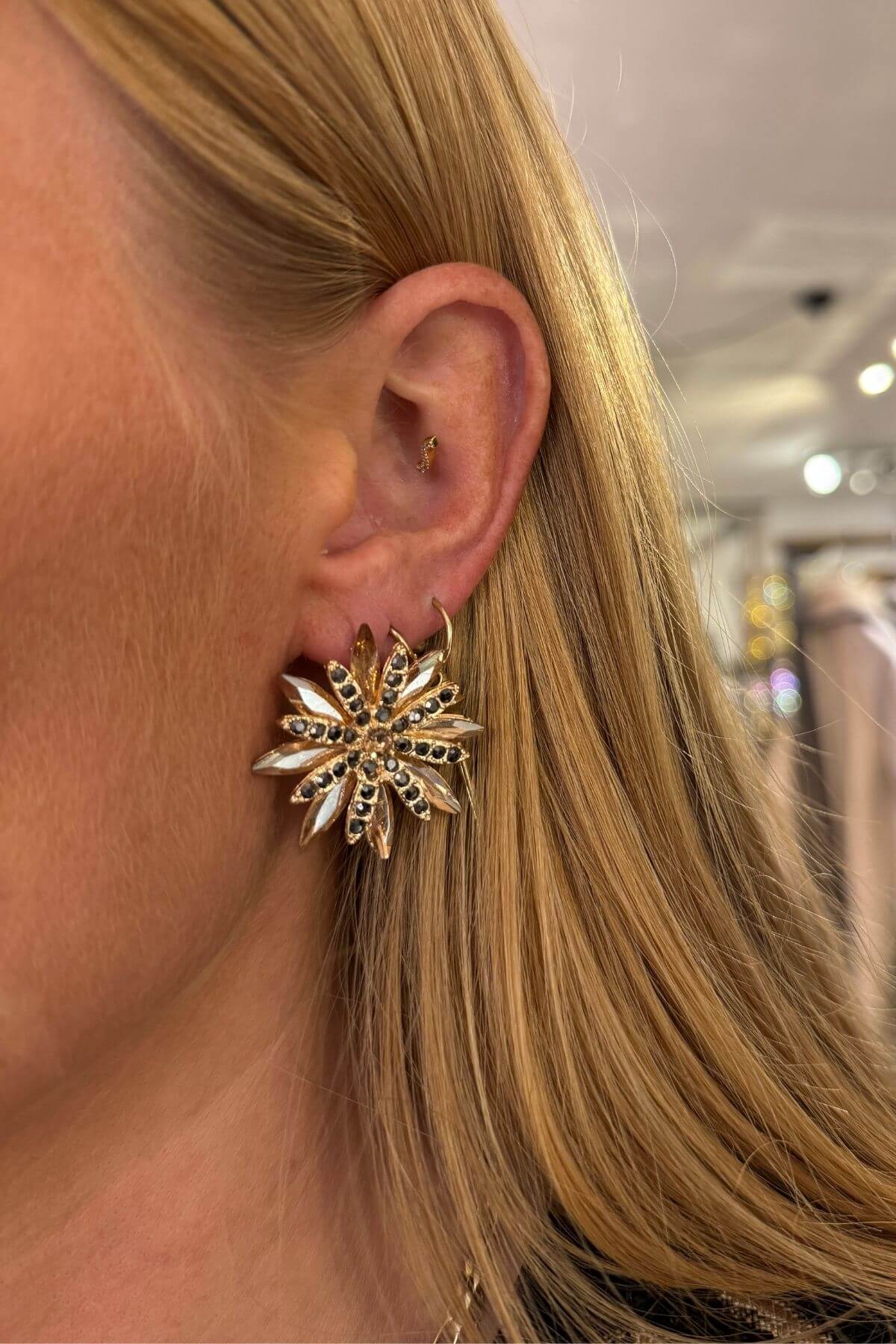 Radiant and bold, these gold-tone floral earrings sparkle with crystal accents in a striking sunburst design. A statement of refined elegance — perfect for adding a touch of luxury to any look.