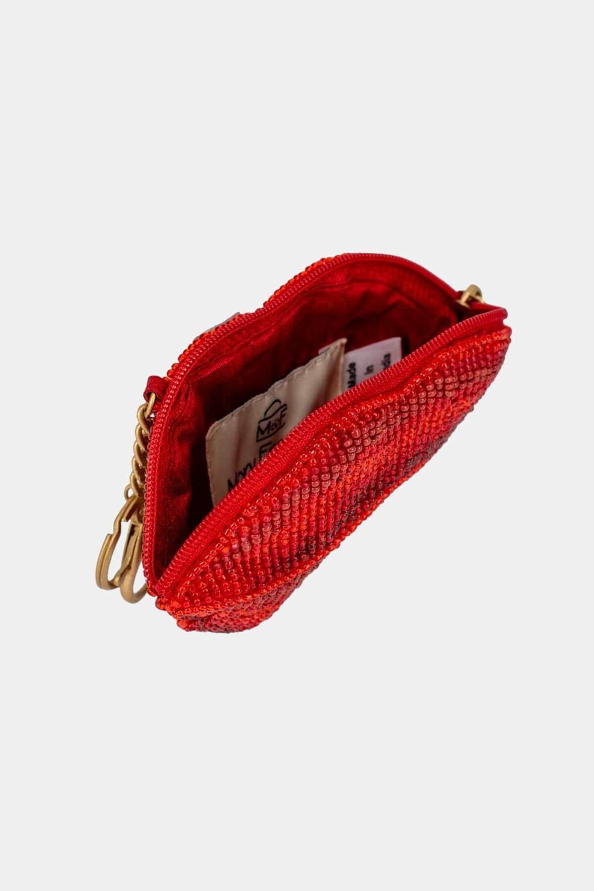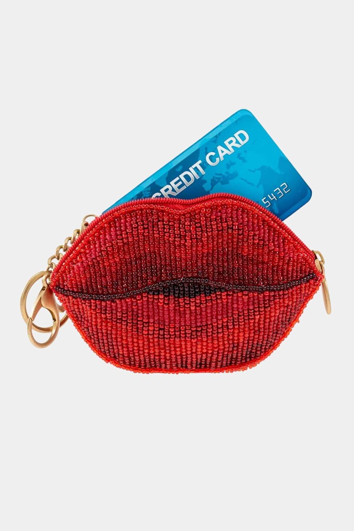Pucker up and get ready for some attention with this bright red smooch-worthy coin/fob purse. We seriously just cannot get enough of the delicate yet subtle ombre effect of the hand-beaded craftmanship. This little but mighty favorite has a zipper closure, keyring, and easy-open lobster-claw clasp and yes it does fit a credit card!
