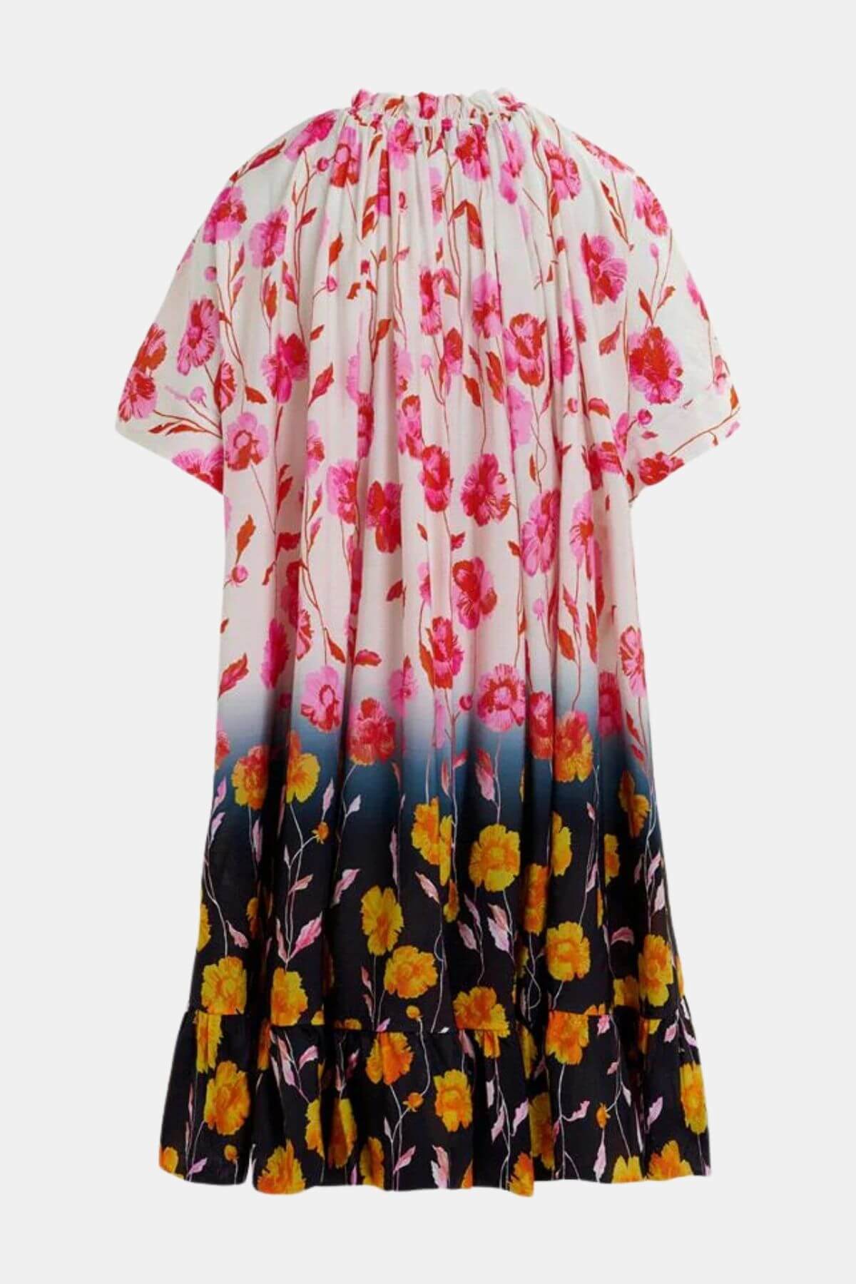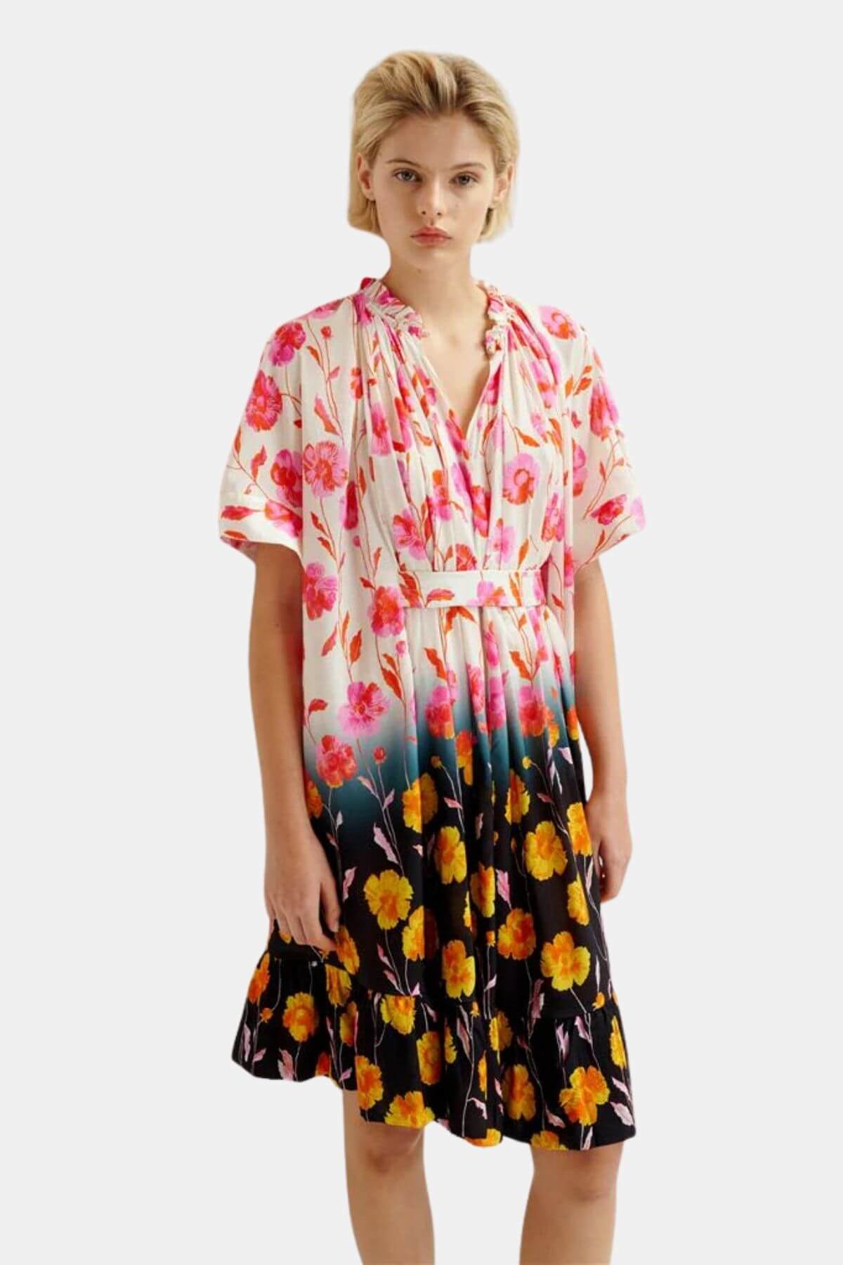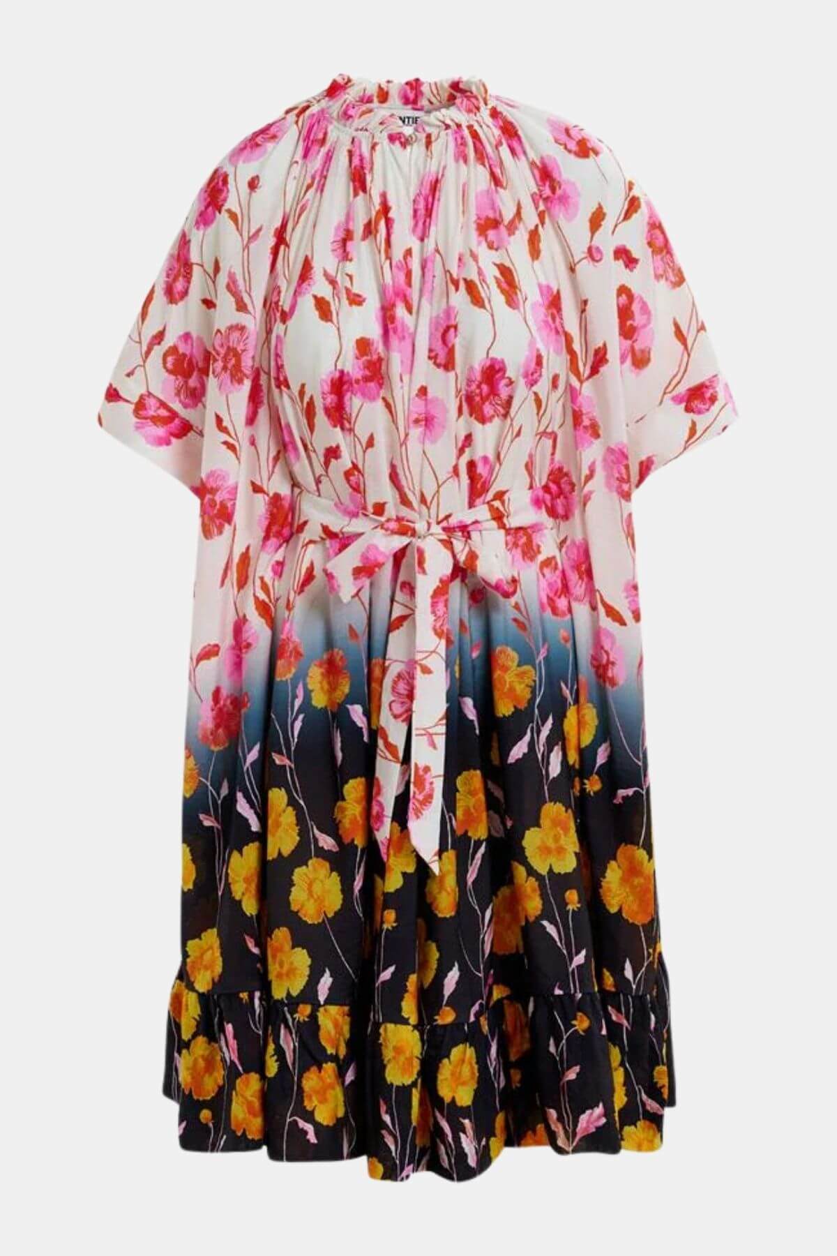 Oversized knee-length shirt dress plays with volumes and textures thanks to the high ruffled neckline, pleats inserted at the top and wide-cuff sleeves. Notice how the self-fabric belt disappears at the back to enhance the flowy silhouette while still accentuating the waist at the front. Please consult the oversized fit size guide to find your size.