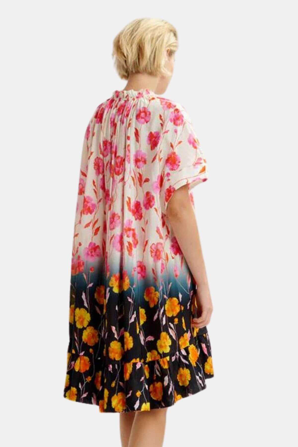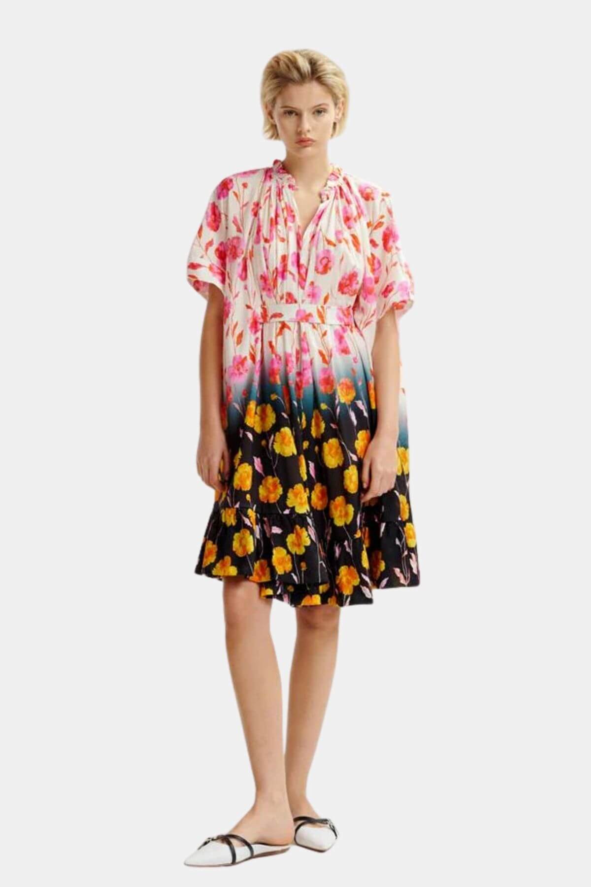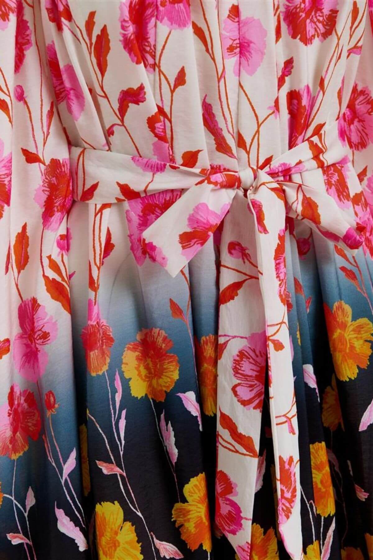 Oversized knee-length shirt dress plays with volumes and textures thanks to the high ruffled neckline, pleats inserted at the top and wide-cuff sleeves. Notice how the self-fabric belt disappears at the back to enhance the flowy silhouette while still accentuating the waist at the front. Please consult the oversized fit size guide to find your size.