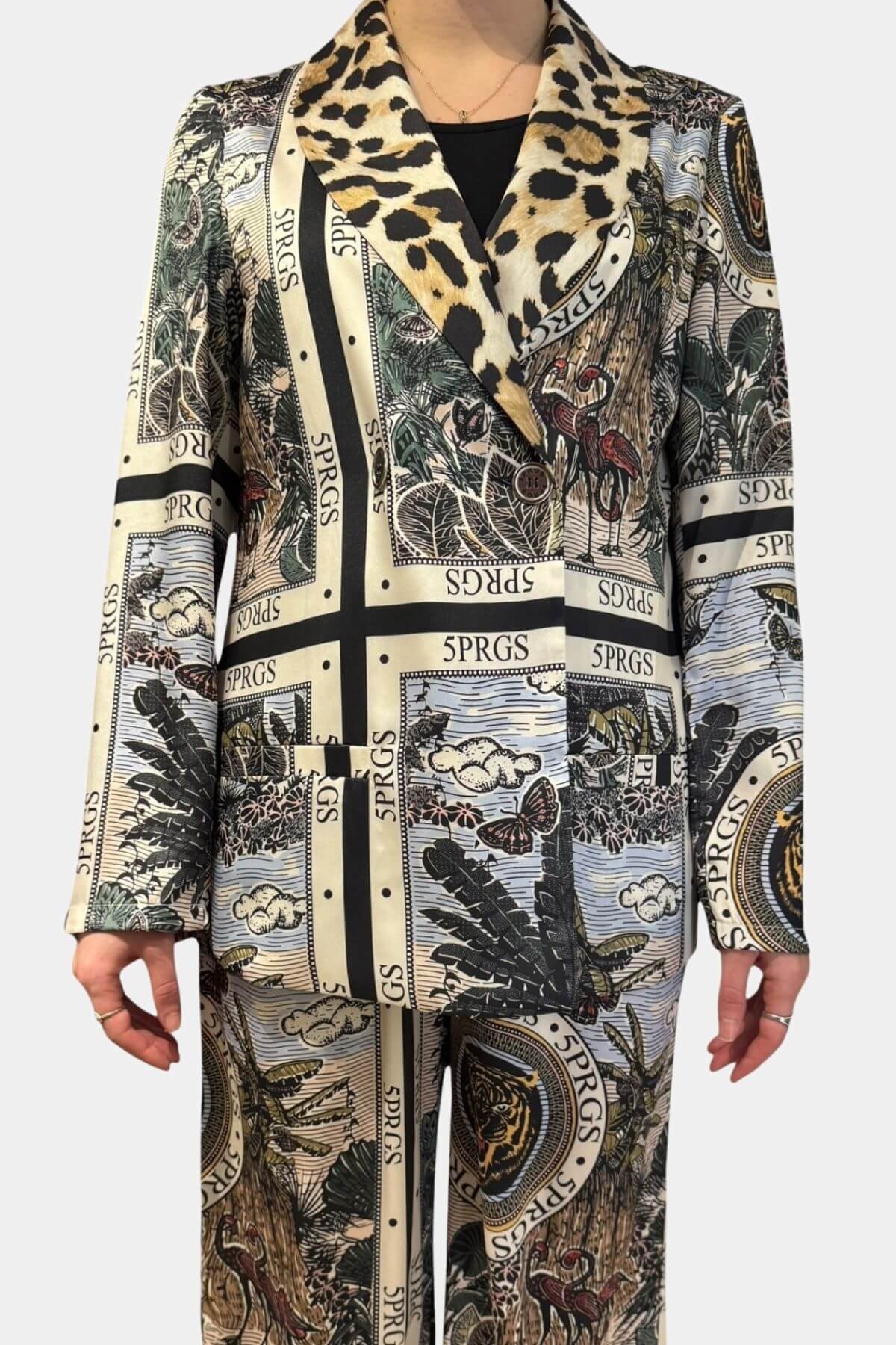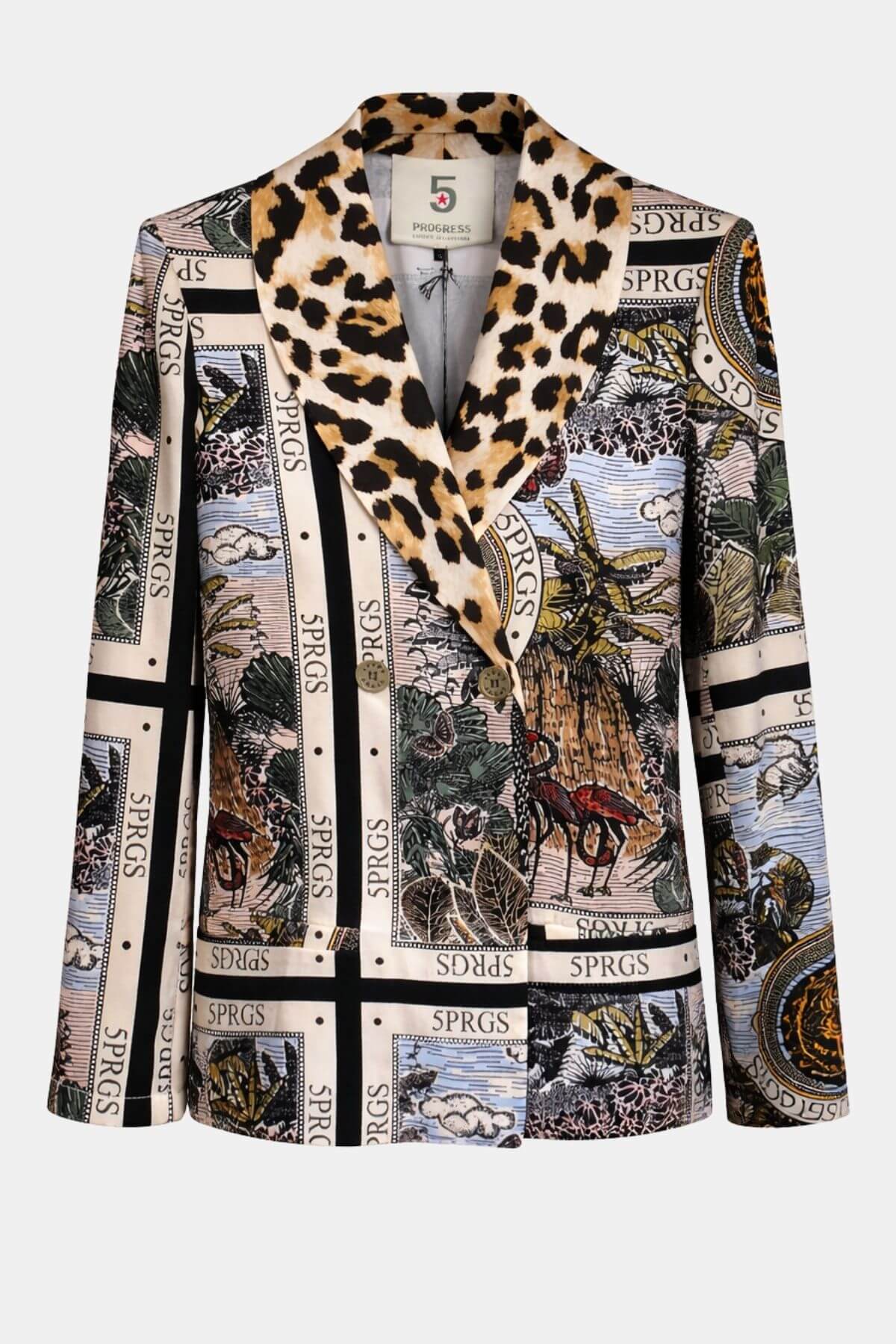 Look beautiful in this 5 Progress Jacket with Eden Garden Print, and leopard detail. wear with Patching Eden Garden pants.