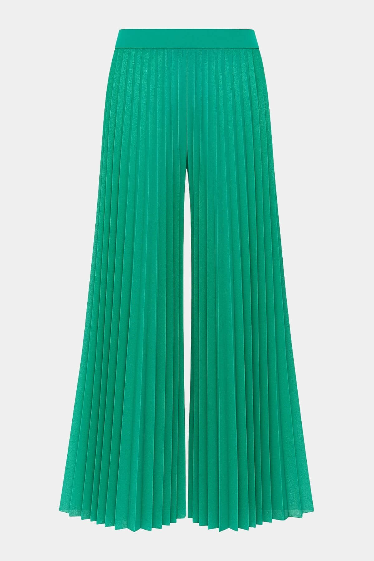 • SEMI-TRANSPARENT PLEATED TROUSERS, WIDE-LEG WITH REMOVABLE INTERNAL CULOTTES, ELASTICATED WAIST, MID-RISE.