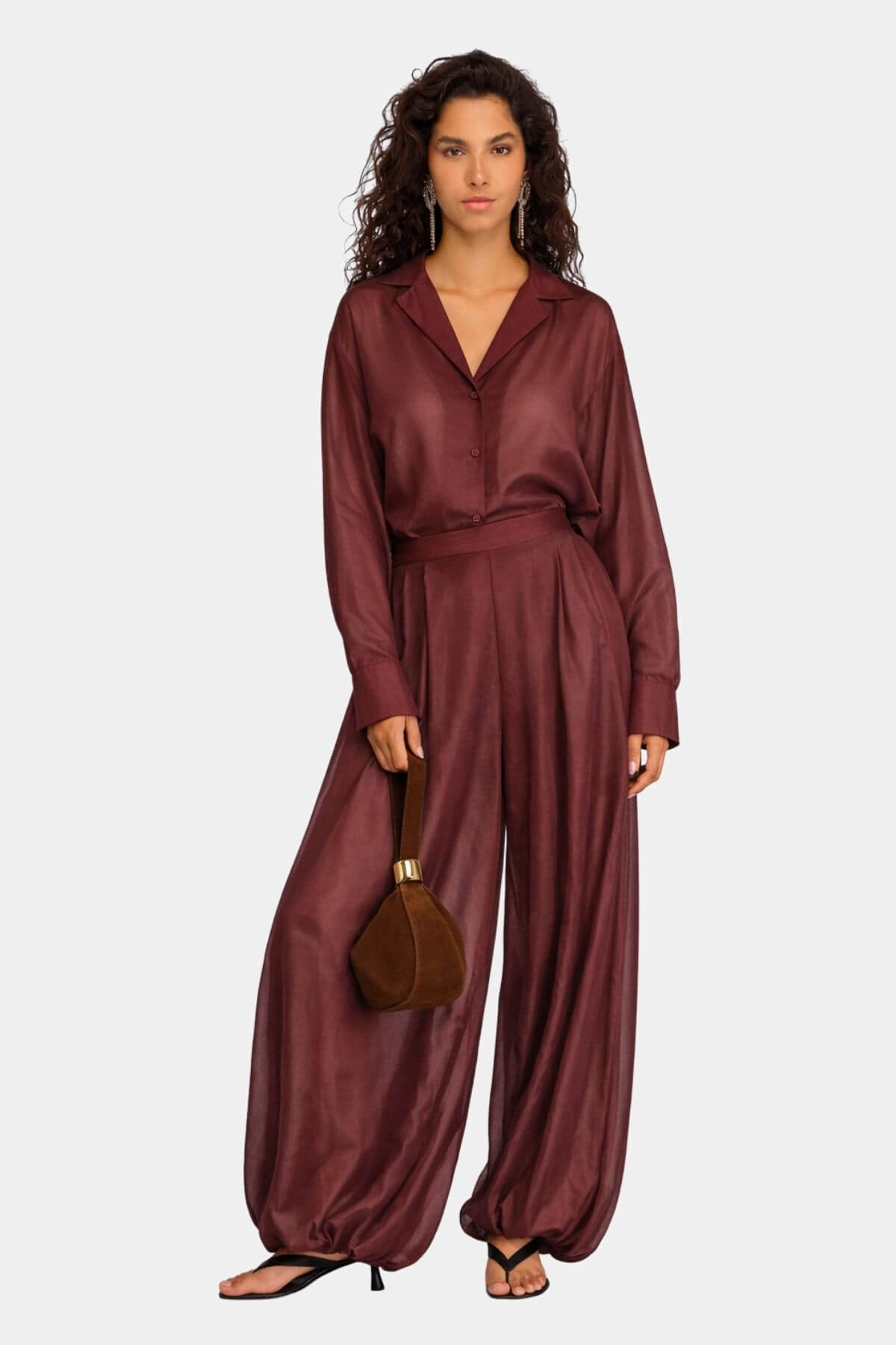 Bukser i bomuldsblandet musselin med et let, let gennemsigtigt look. Designet med en flydende silhuet med brede ben og en elastisk linning, der sikrer komfort og bevægelsesfrihed. Afsluttet med diskrete sidelommer, der giver et raffineret og afslappet look.