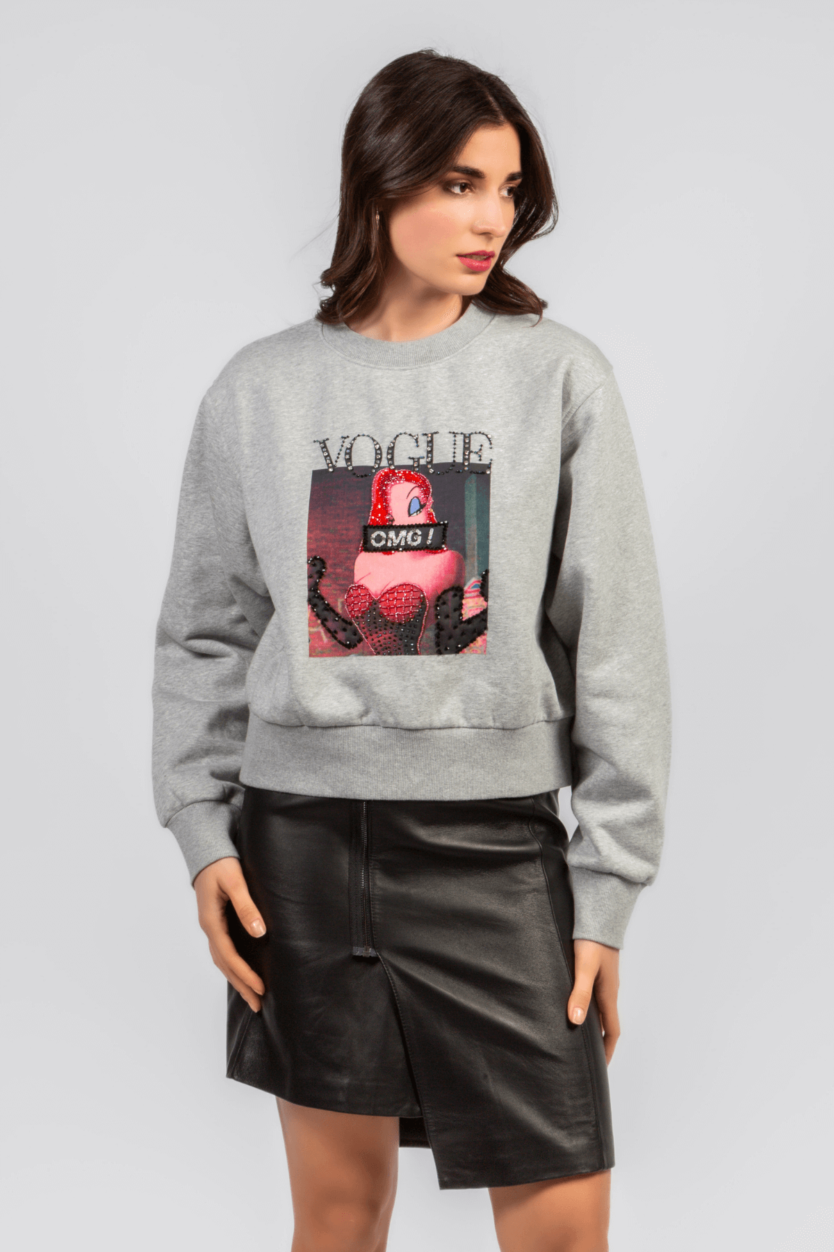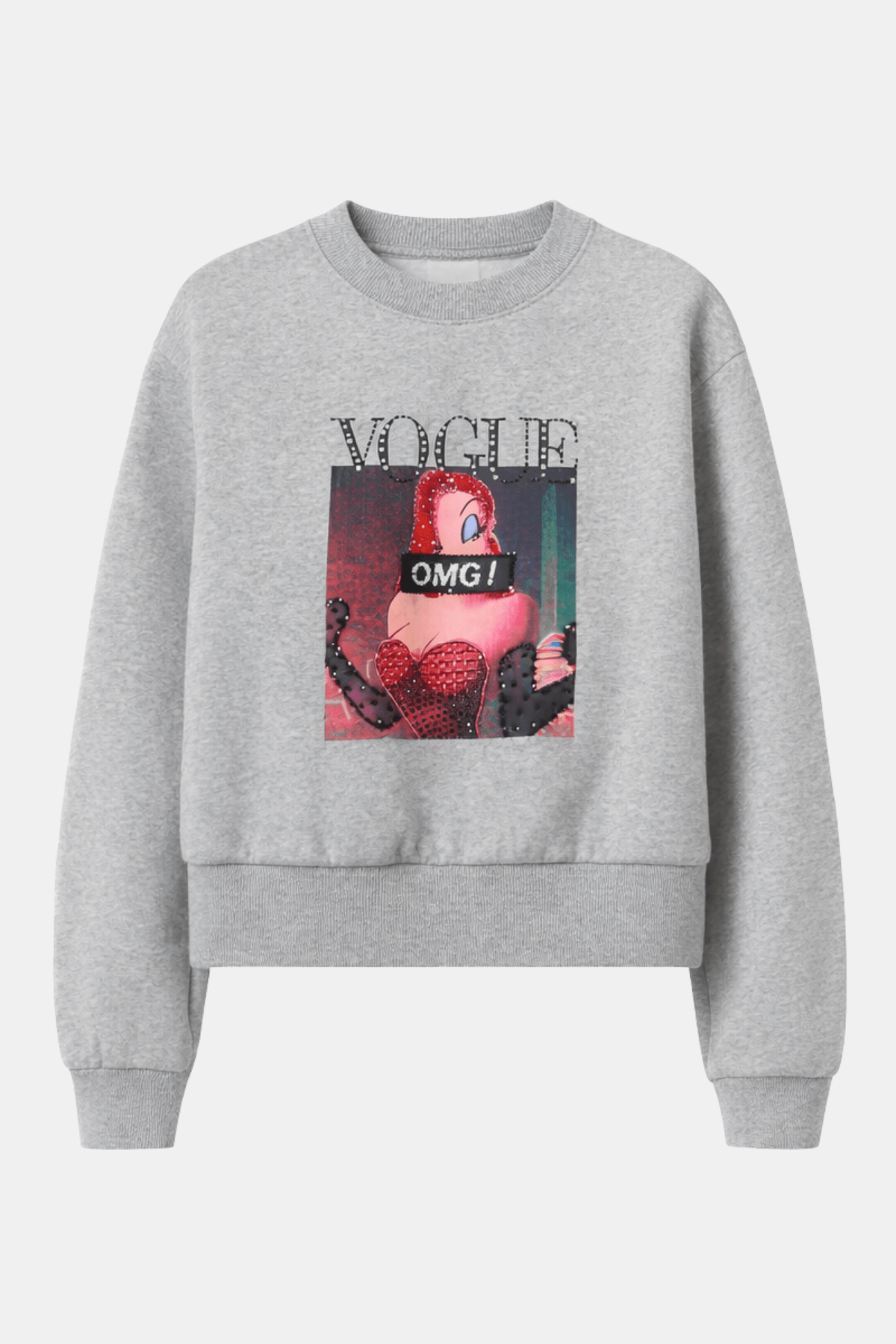 Sweatshirten er fremstillet i blødt, gråt bomuldsblandingsstof og prydes af et markant grafisk print på fronten med tegneseriefiguren Jessica Rabbit, der giver et legesygt og iøjnefaldende look. Et praktisk hverdagsstykke, der passer perfekt til nederdele, jeans eller skræddersyede bukser.