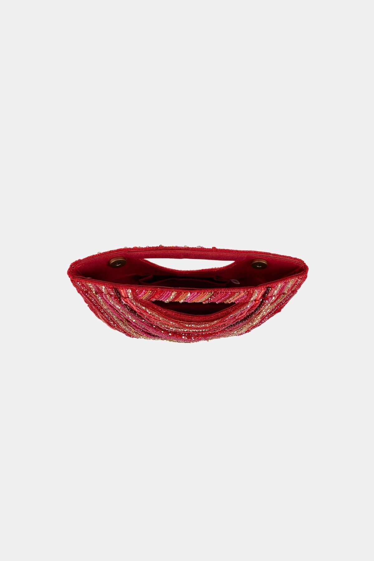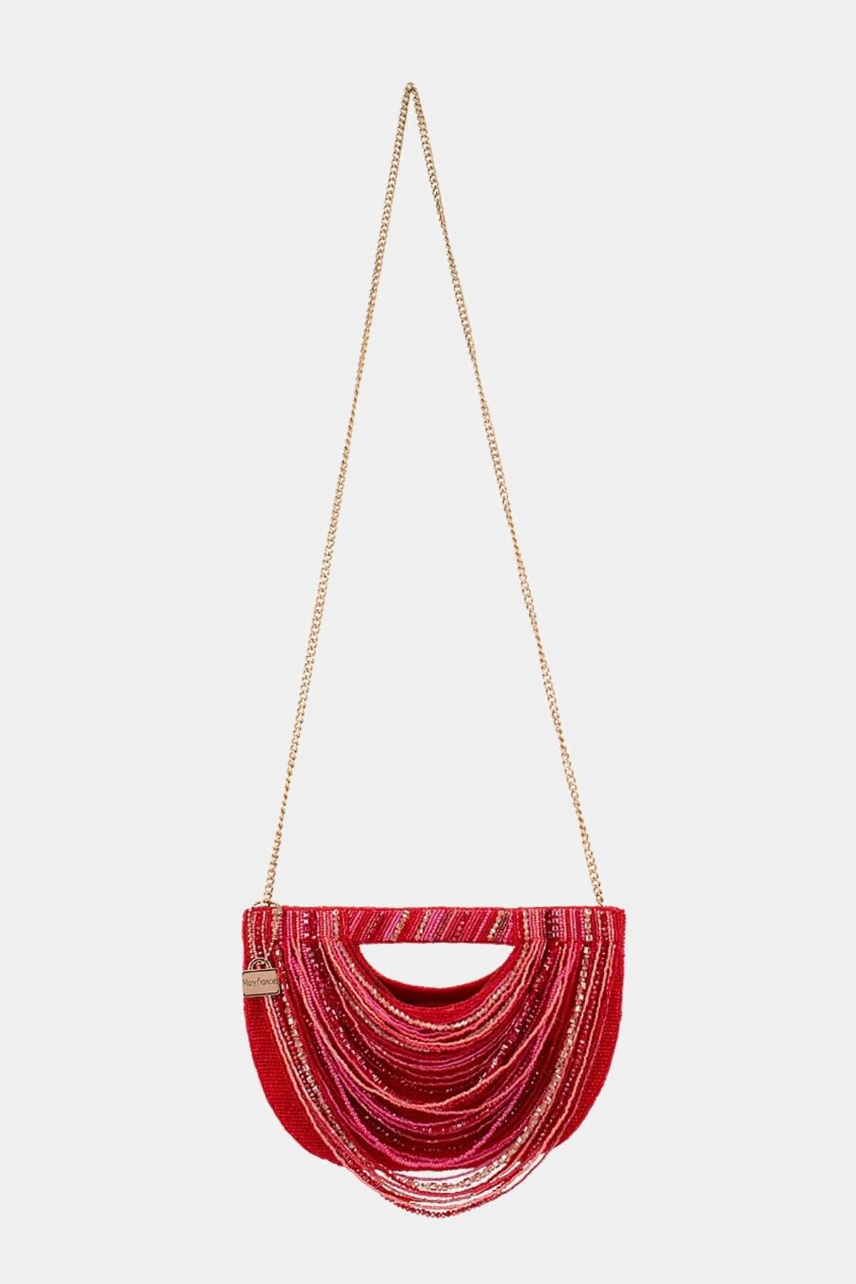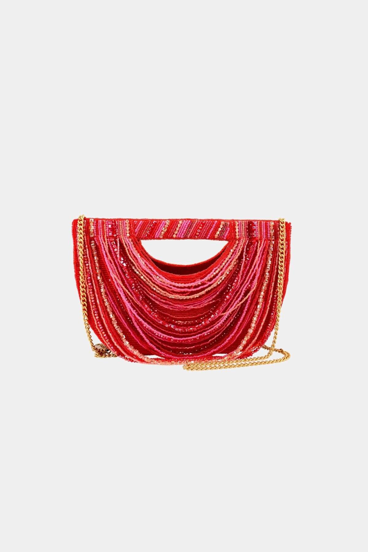 Turn every entrance into a celebration with this dazzling handbag, draped in layers of red, pink, and gold beaded brilliance. This purse is a party in accessory form bold, joyful, and full of flair. Whether handheld or admired from across the room, this handbag steals the spotlight effortlessly!