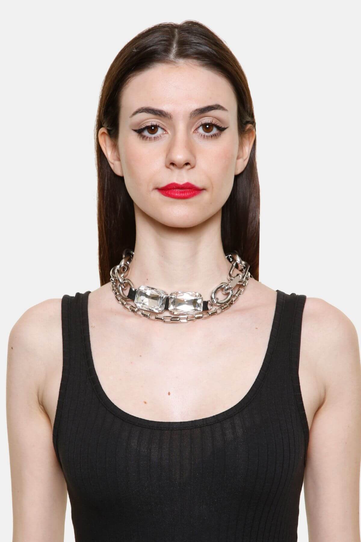 A statement chain belt adorned with large sparkling glass stones — perfect for adding glamour and shine to any outfit.