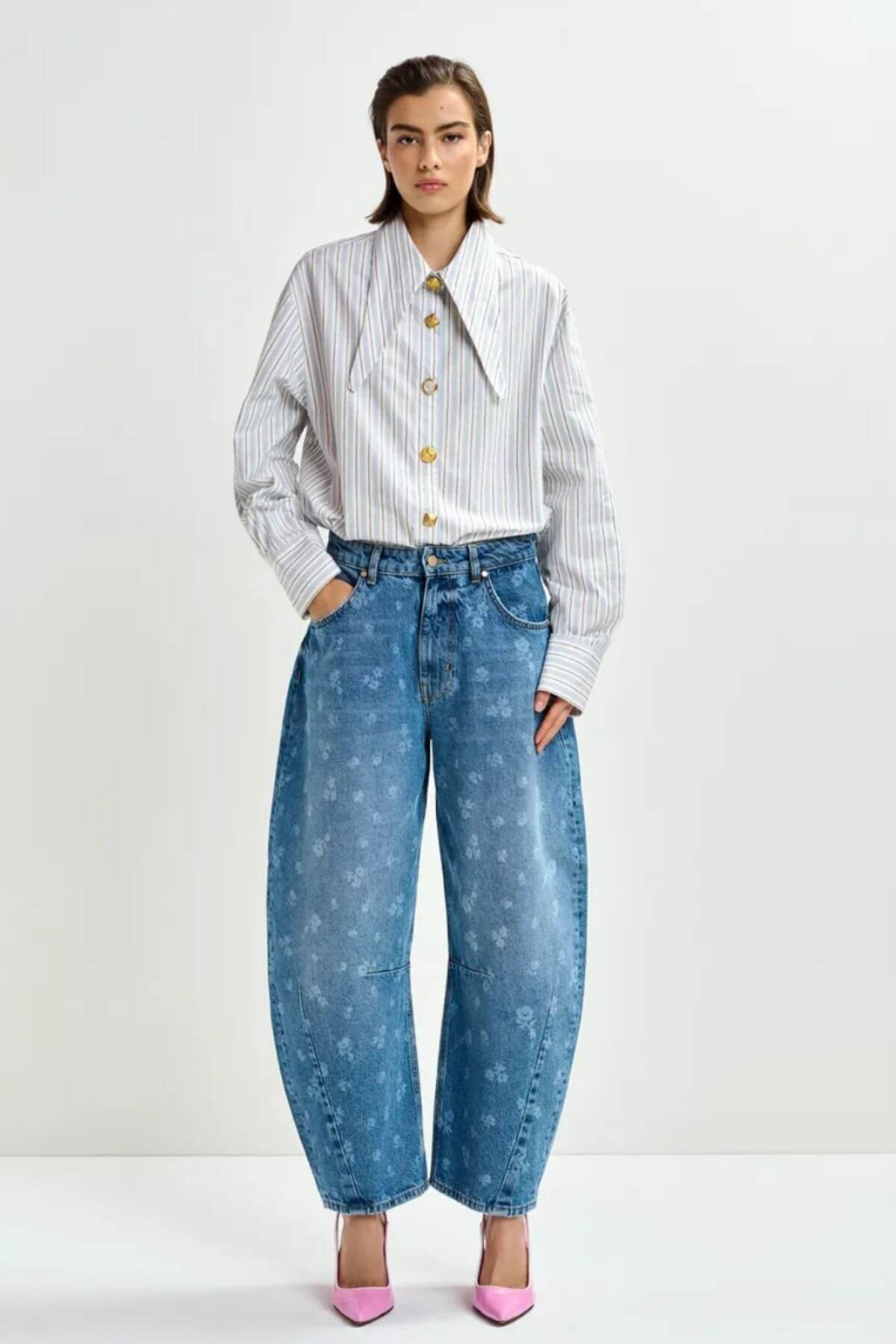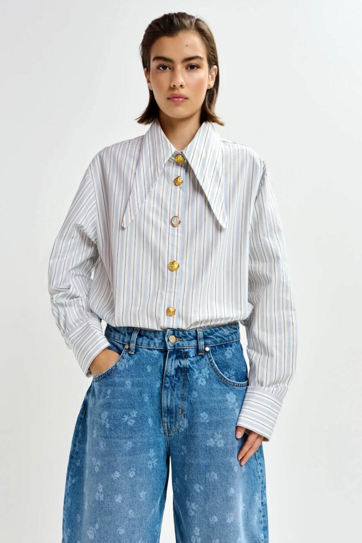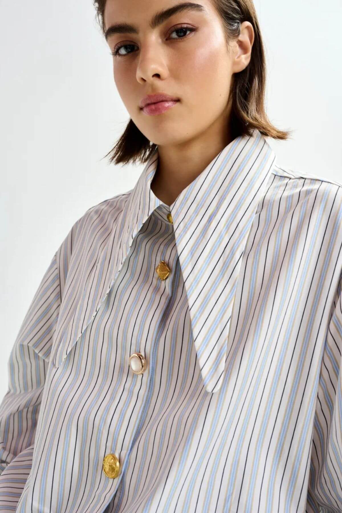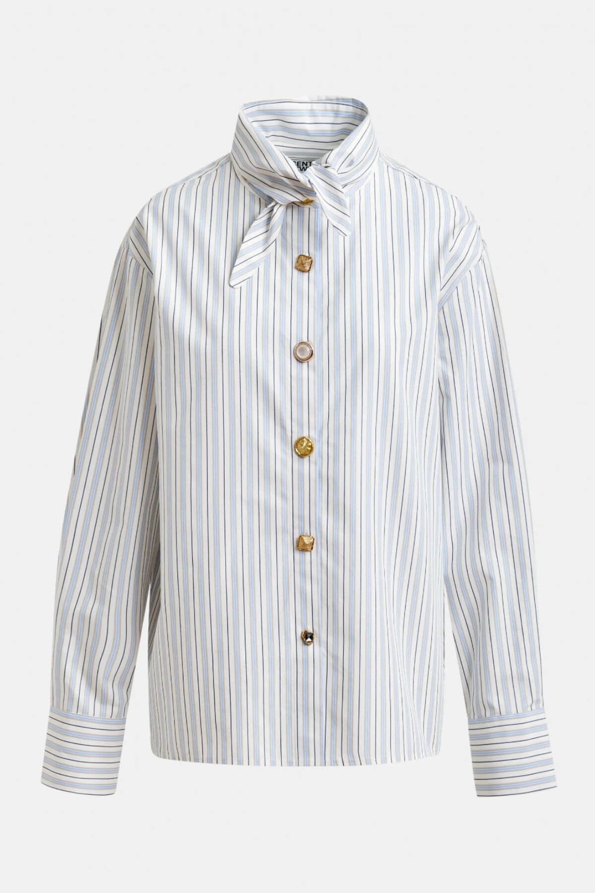 Crafted from 100% cotton, this shirt is designed with an oversized fit. The elongated collar points can be tied into a knot for an alternative styling detail. Dropped shoulders enhance the easy shape, while the button fastening features mismatched buttons for a subtle, unexpected contrast.