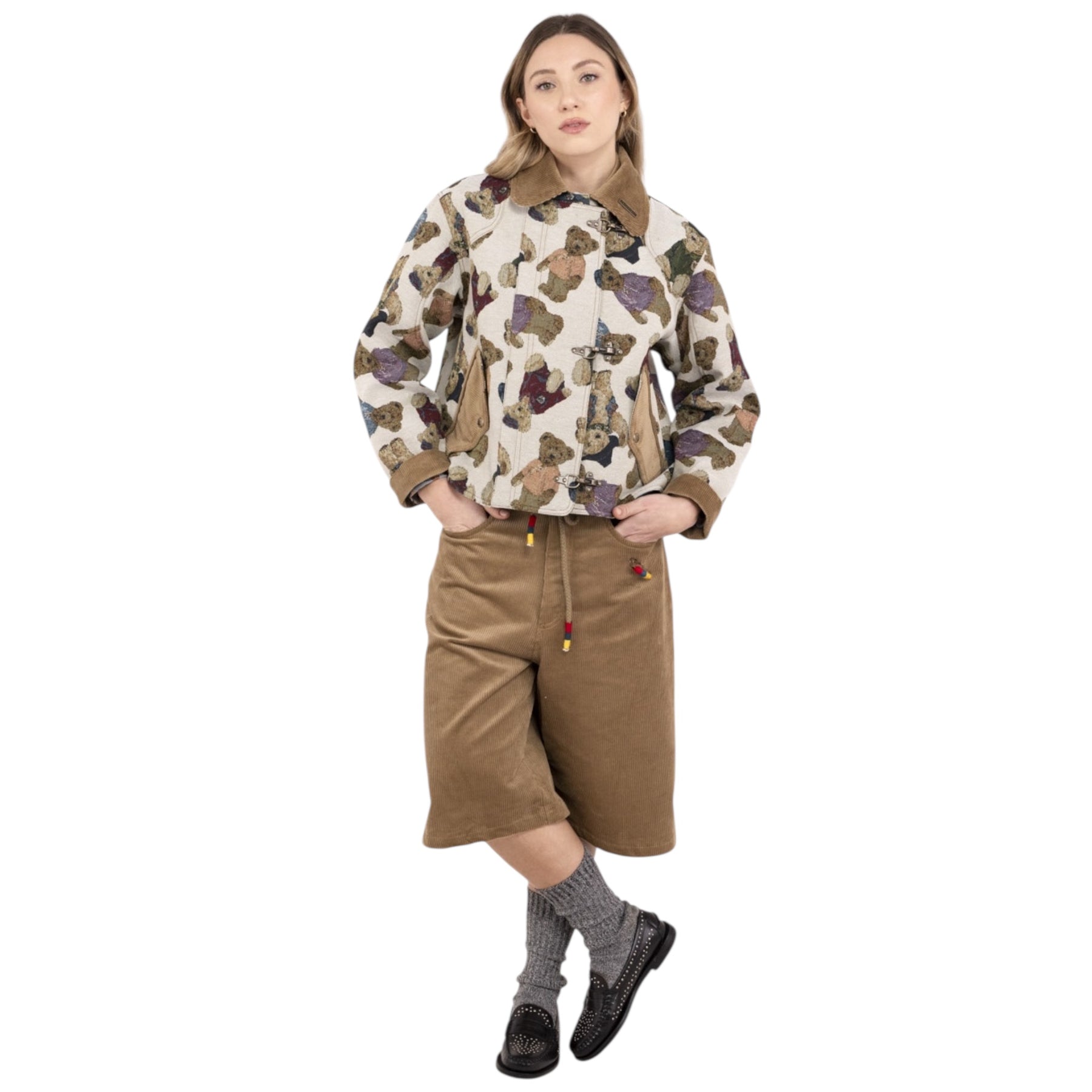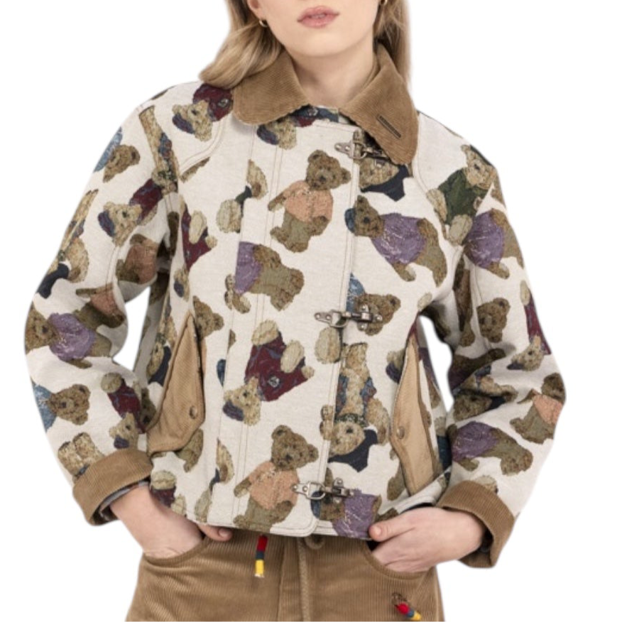 A collector’s piece that transcends seasons and expectations. This statement jacket from Front Street is crafted in a richly woven jacquard tapestry featuring an all-over teddy bear motif — a playful nod to nostalgia, elevated by exquisite Italian craftsmanship.