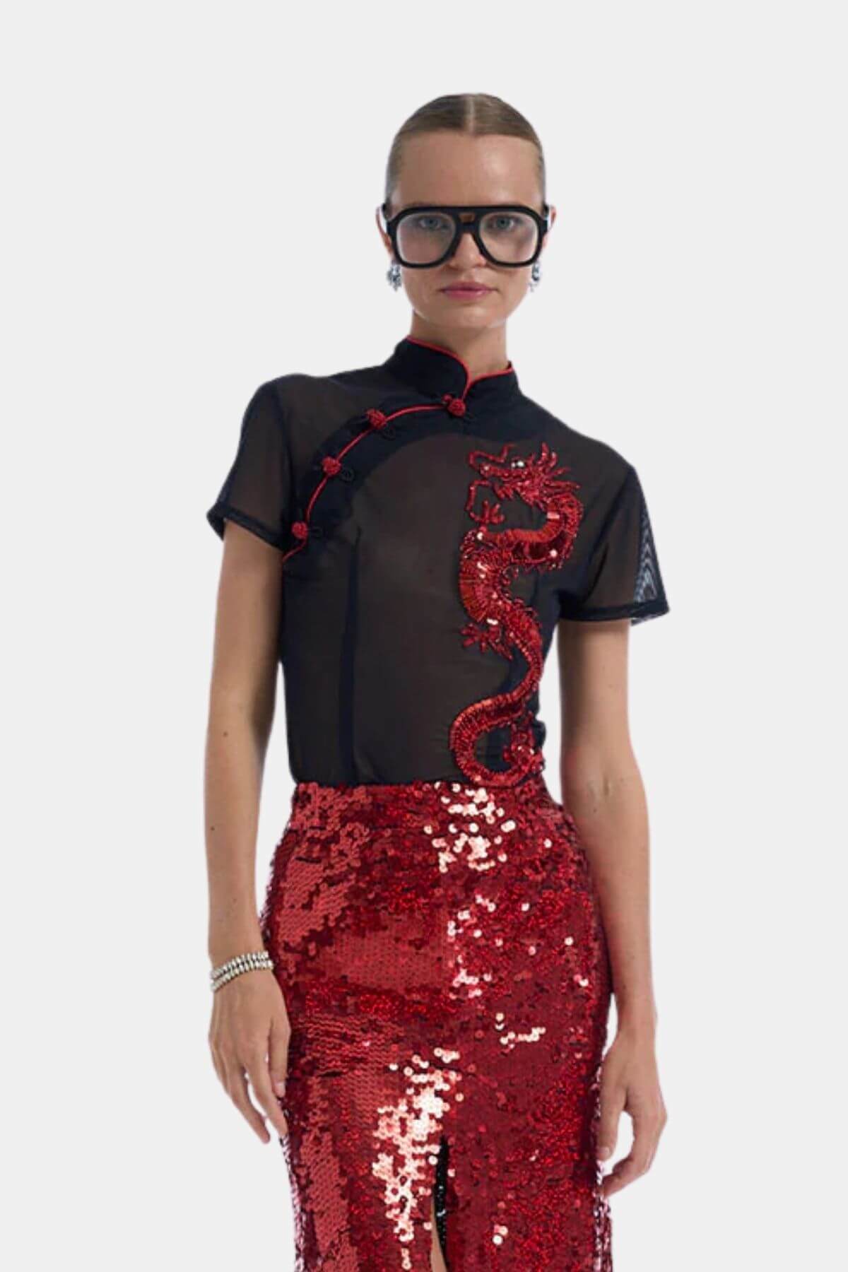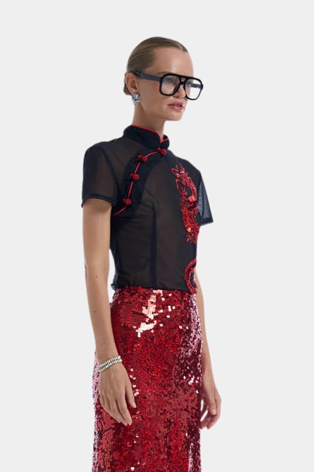 Material: Double stretch net fabric & Sustainable PET Paillettes