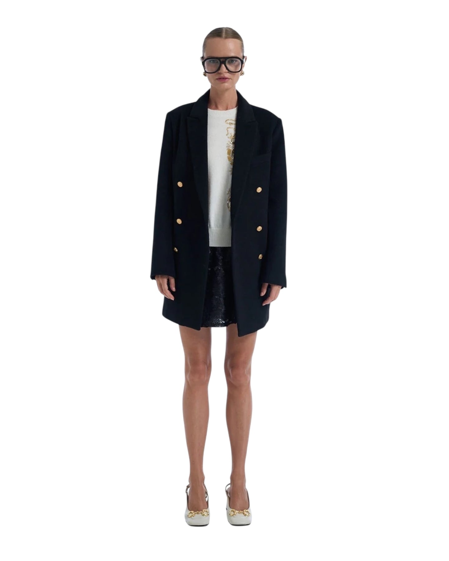 A regular-fit glam blazer made of wool with one of our sequin embroidered embellishments.