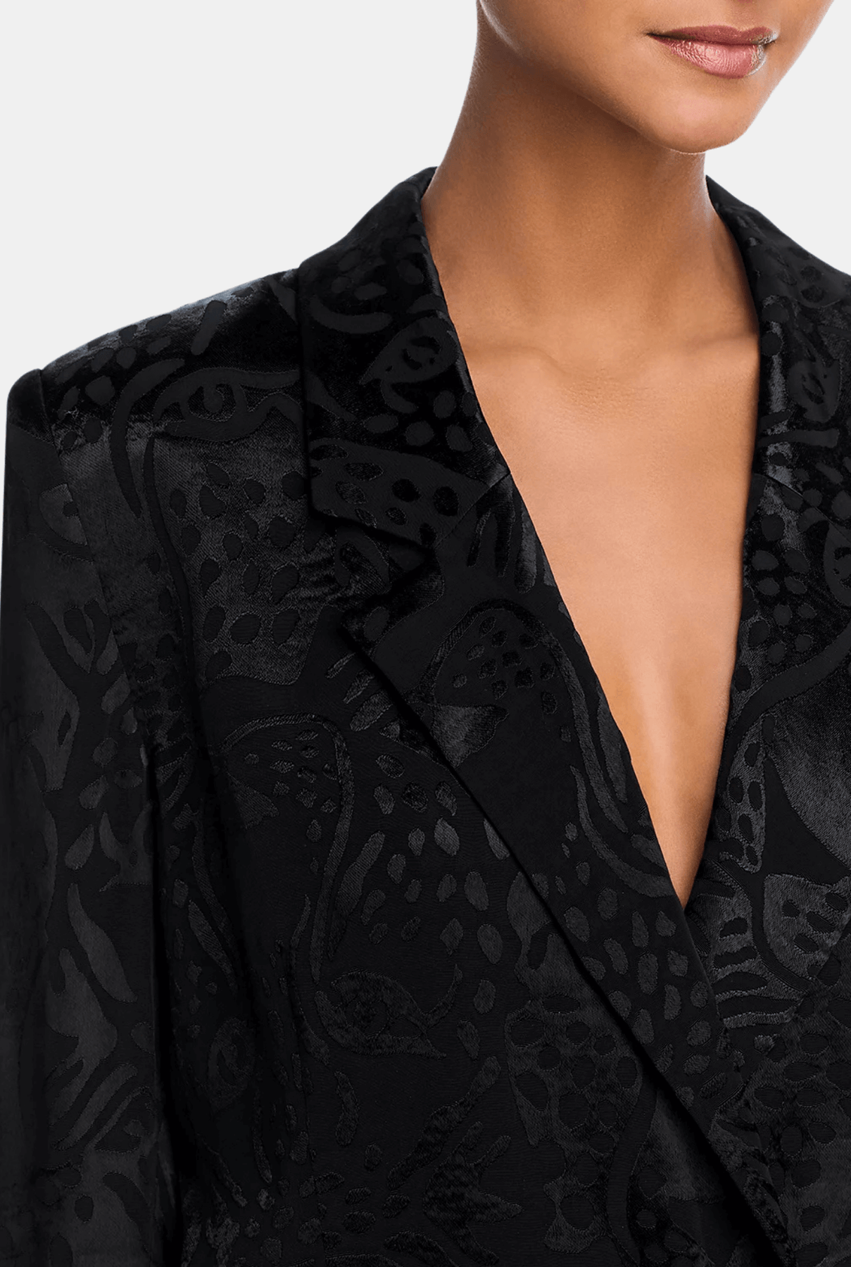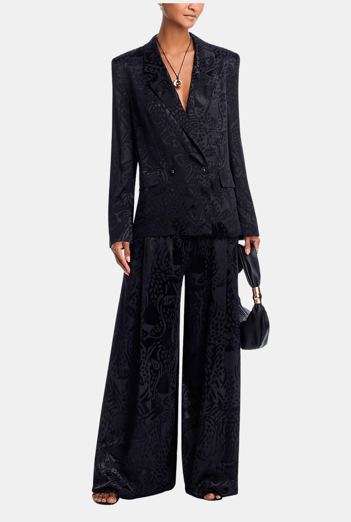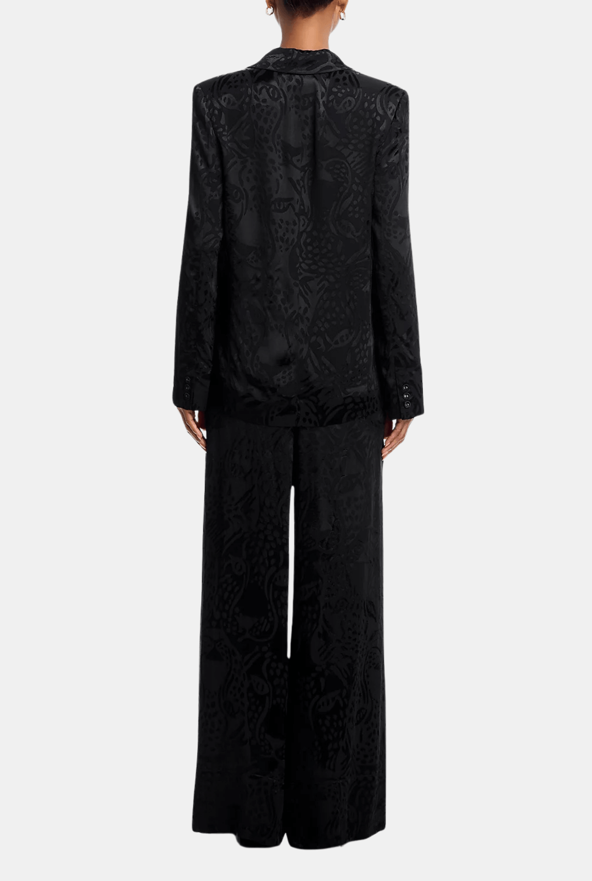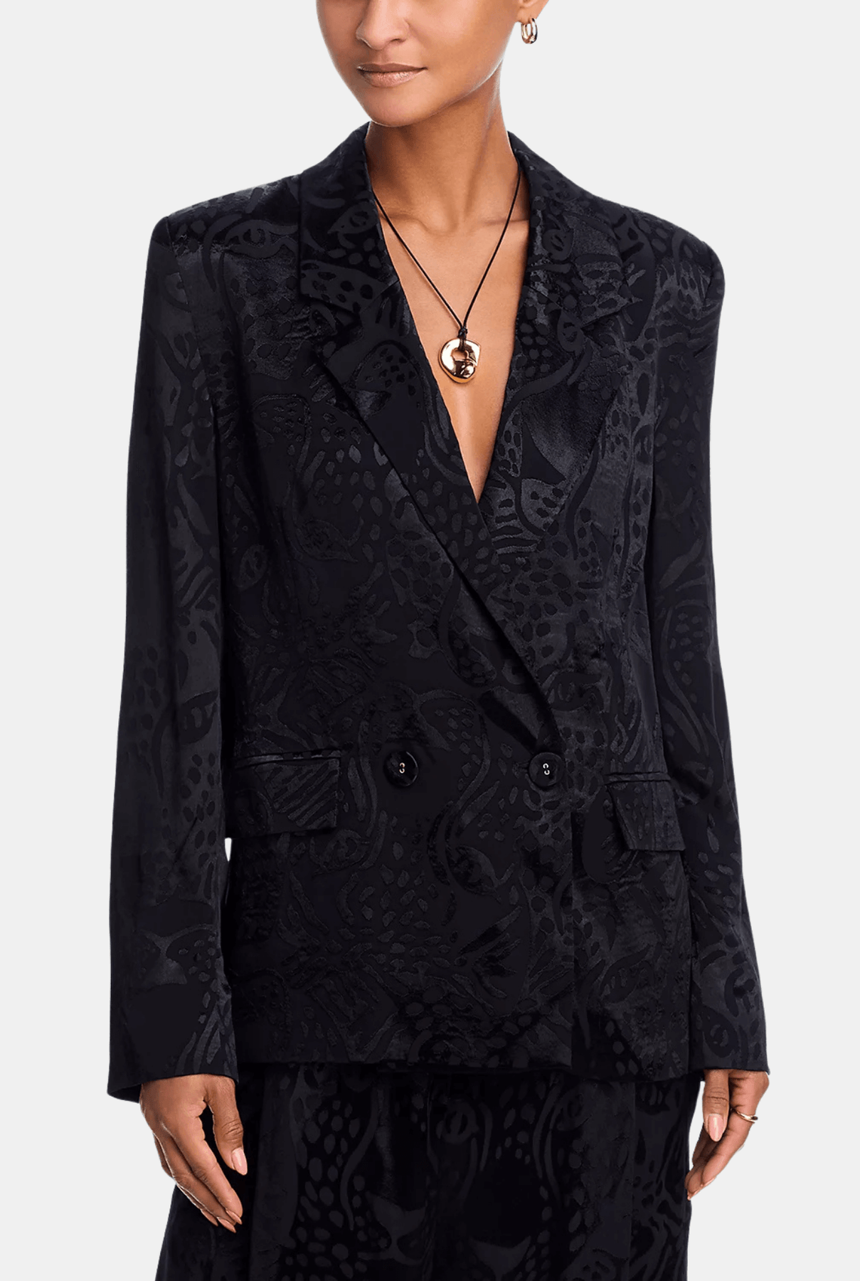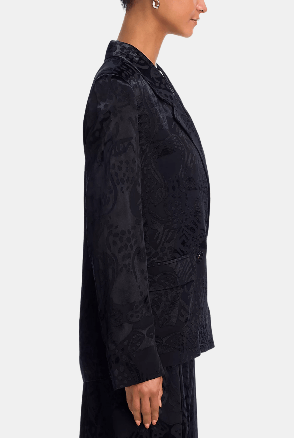 Elevate your wardrobe with this sophisticated blazer, featuring a luxurious tone-on-tone leopard jacquard design. Combining classic tailoring with a modern edge, it’s the perfect piece for work, dinner, or an evening out.