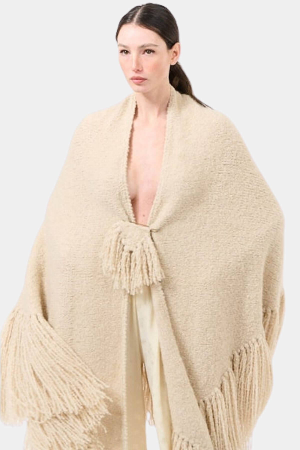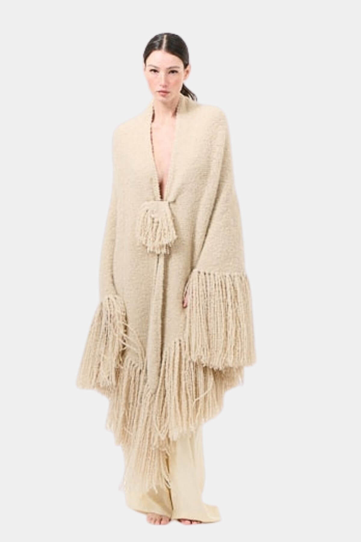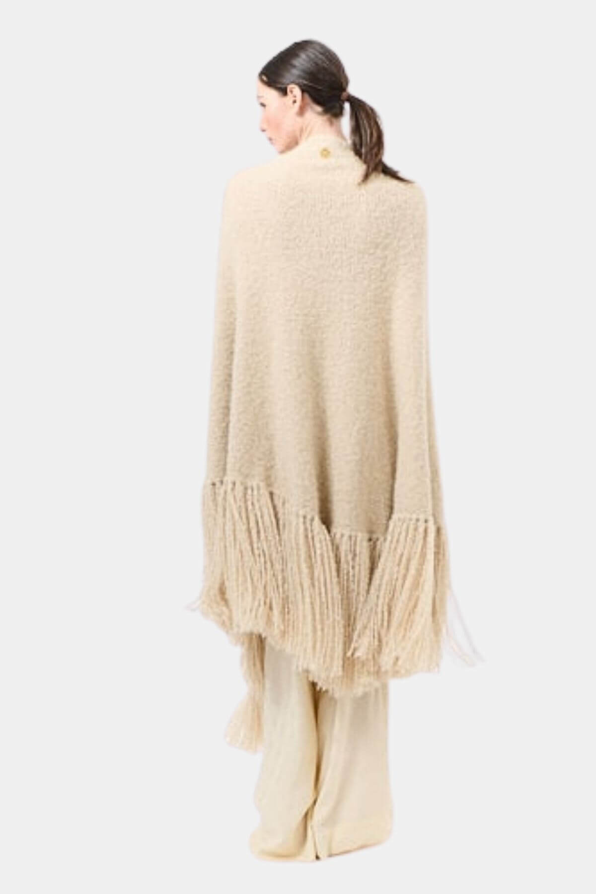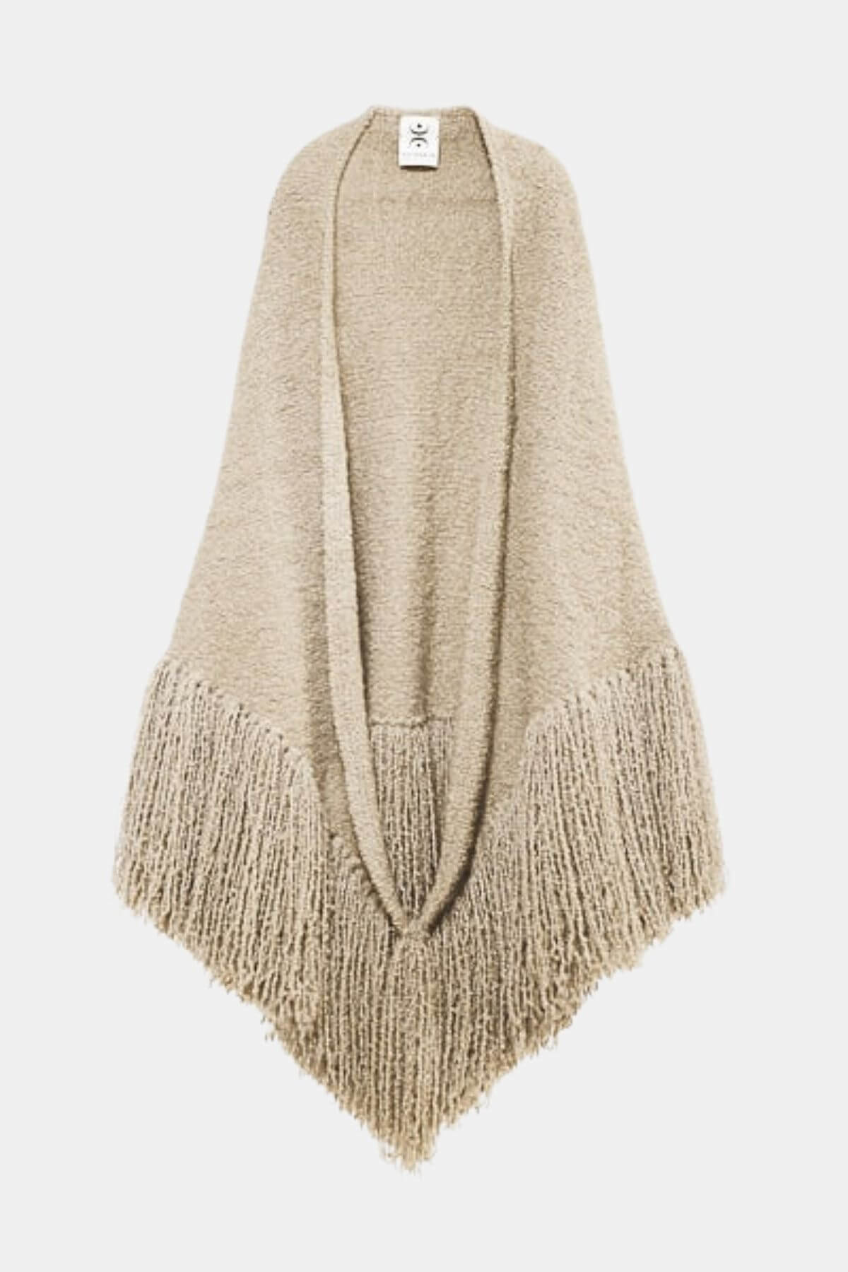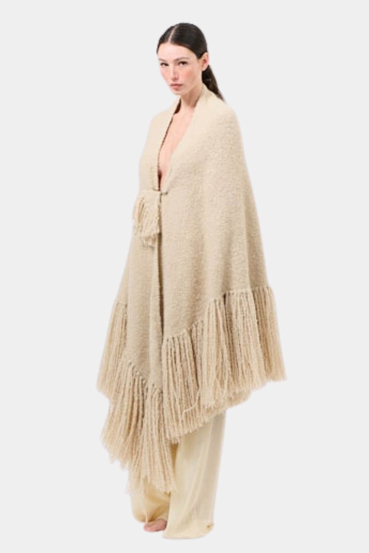 The Baby Cashmere is the finest and longest fiber, extracted from the undercoat that the kids develop to maintain a constant body temperature. Baby Cashmere is characterized by excellent thermoregulatory properties, insulating the body from heat in summer and cold in winter. It is non-itchy against the skin, hypoallergenic, and its natural dyes ensure absolute non-toxicity. The use of Baby Cashmere in the shawls gives the garment added lightness. The shawl can be worn in every season.