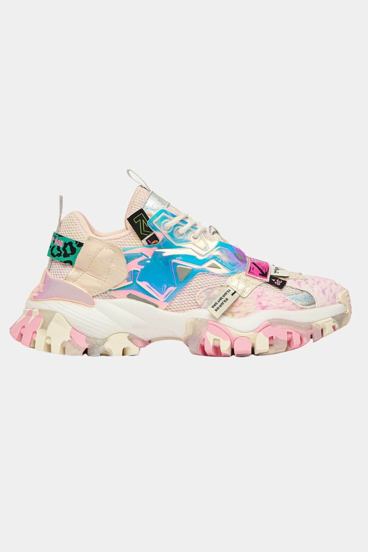 Sneaker in fabric with multi-rhinestone applications, pvc and printed leather inserts. Outdoor rubber out sole with metallic effect insert on the back. Sole height 30 mm. Removable footbed. With a pair of JOIAPARIS JEWEL on your feet you can live your daily adventures with an edge! A sophisticated design that plays with unique color palettes, materials and shapes to make your street outfit sensational.