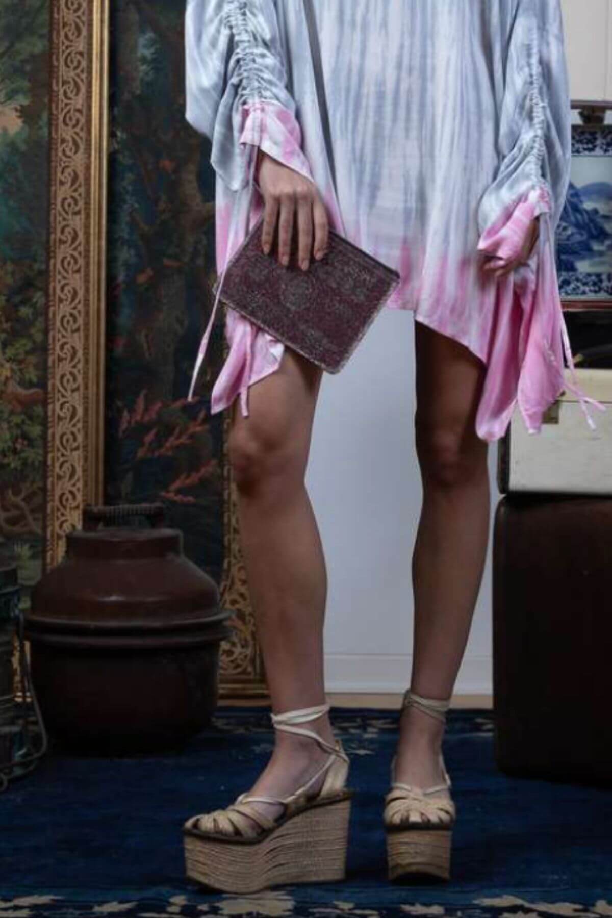 This elegant pochette features a sparkling design with a chic, eye-catching finish. Compact and lightweight, it is perfect for carrying your essentials. Ideal for evenings out or adding a touch of glamour to any outfit.