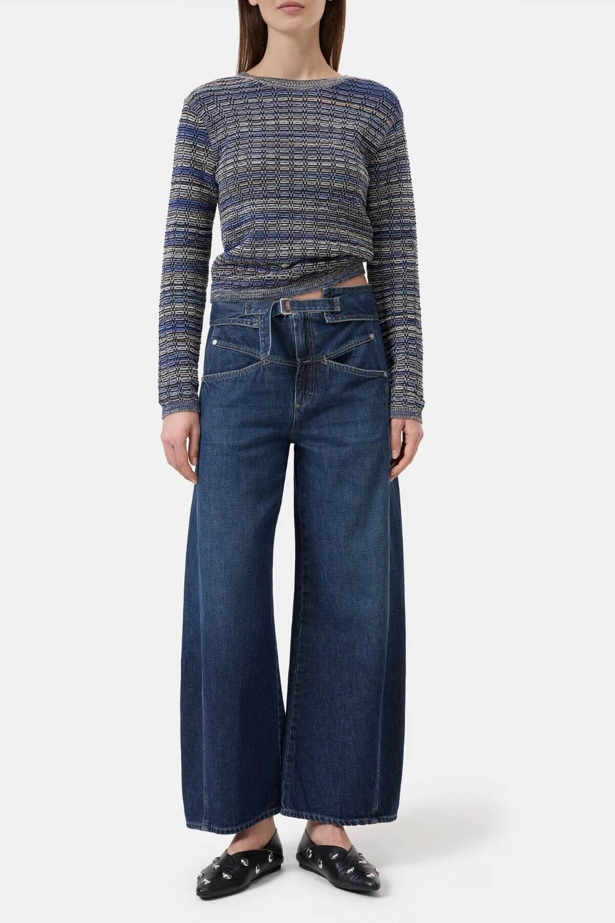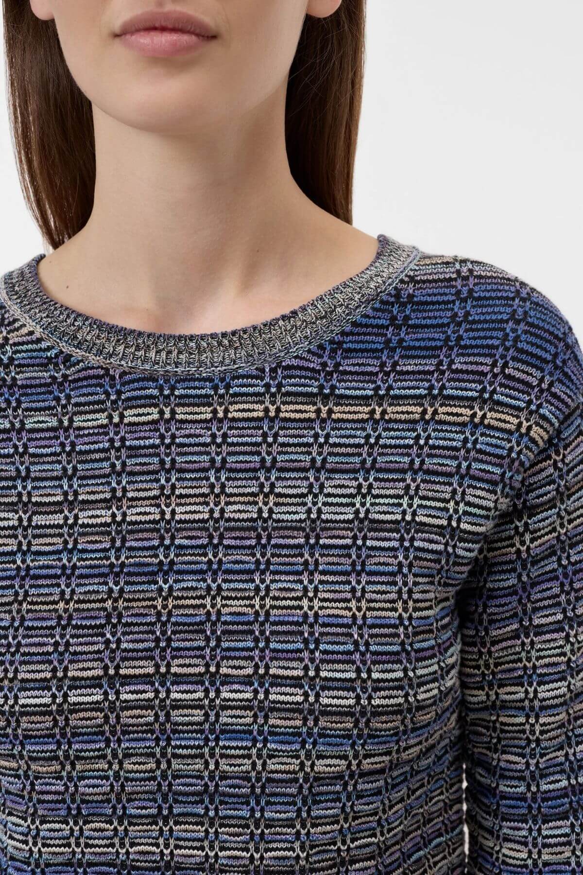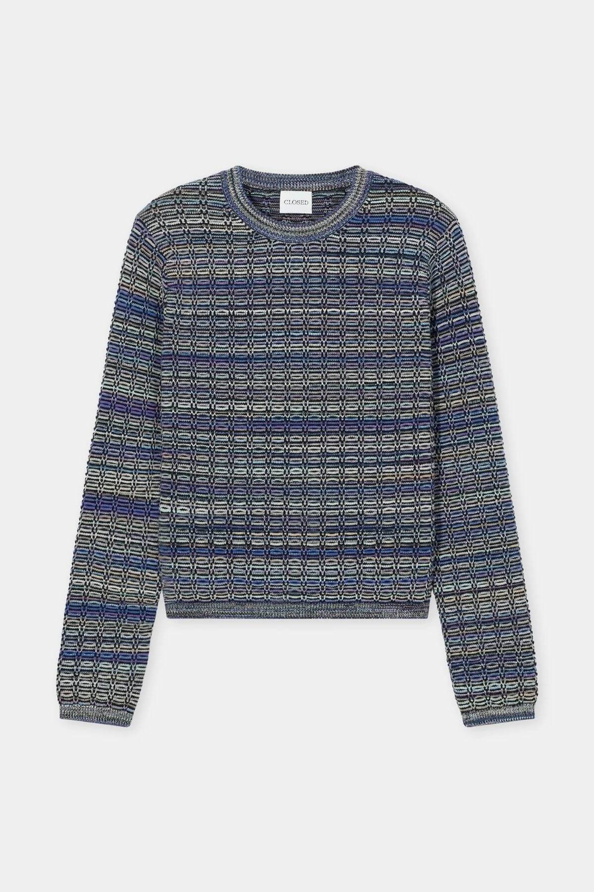 Crew neck jumper in a fitted shape and regular length. Made from a cotton blend with space-dyed yarn in 3D waffle stitch. With multicolour stripe look, ribbed details and long sleeves.