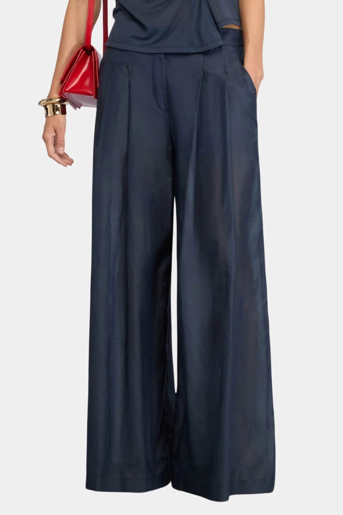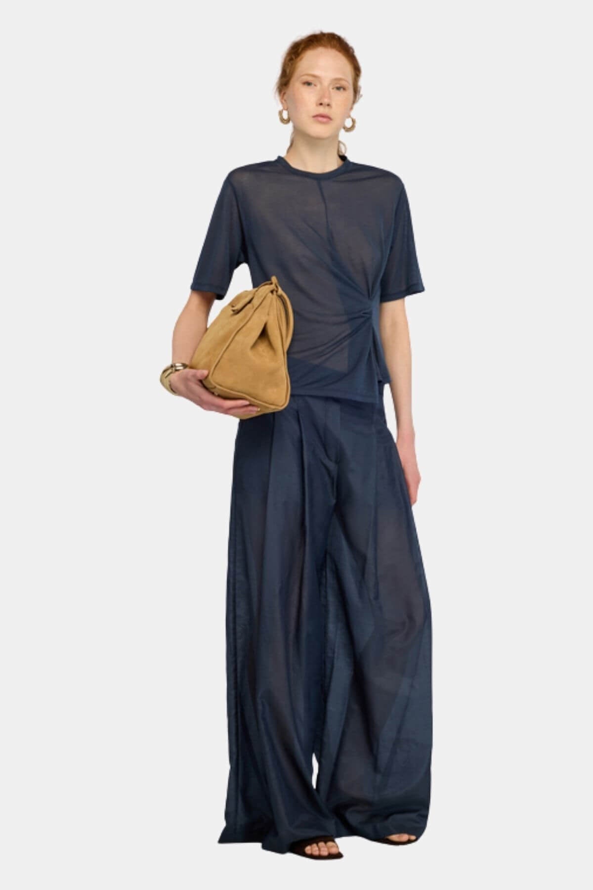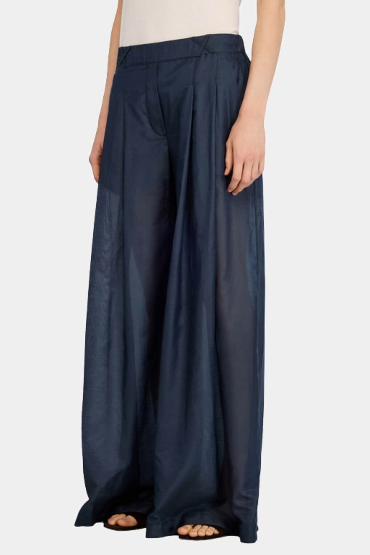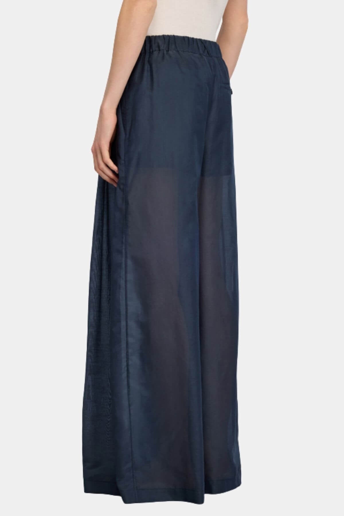 These cotton-blend muslin trousers feature a palazzo silhouette with a loose, wide-leg fit for a fluid and airy feel. Designed with a soft, lightweight texture and an elasticated waist, they offer both comfort and effortless movement.