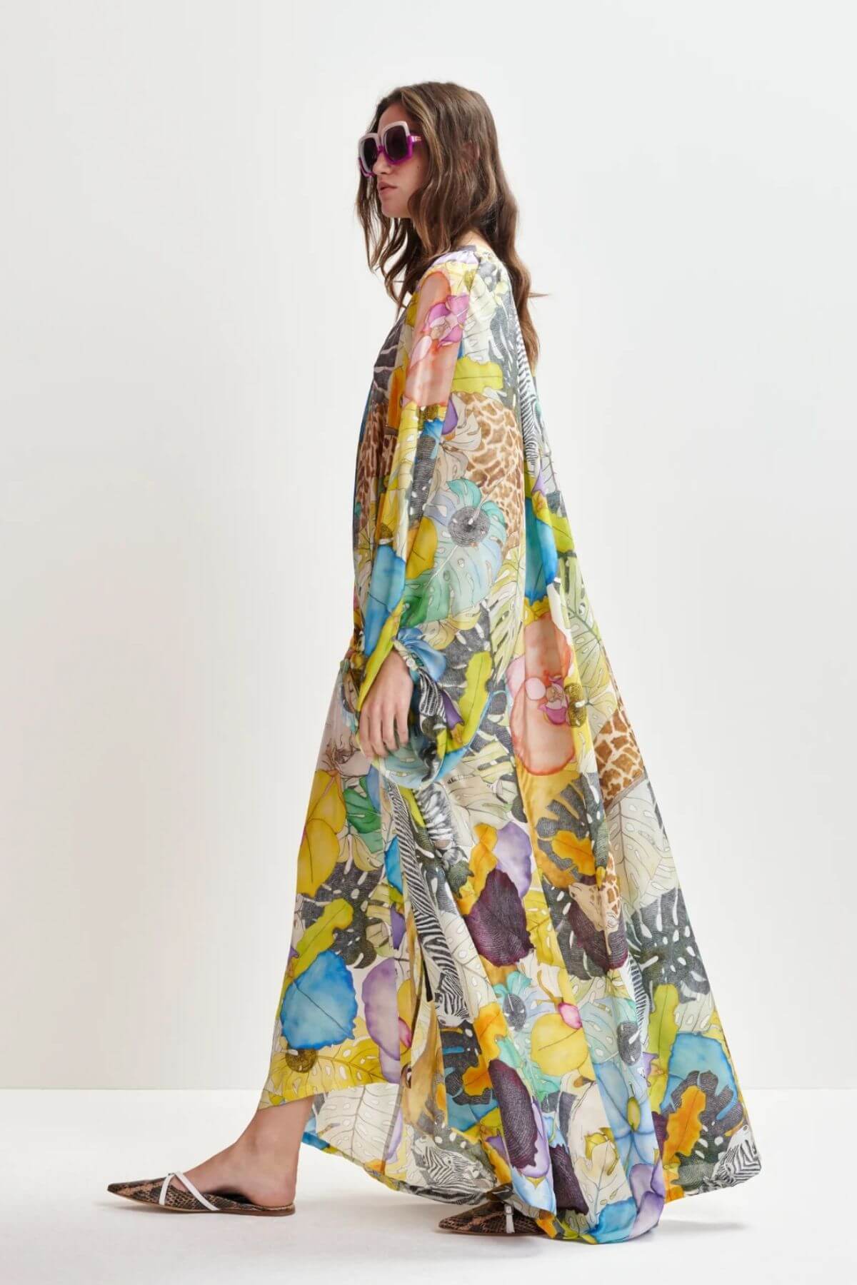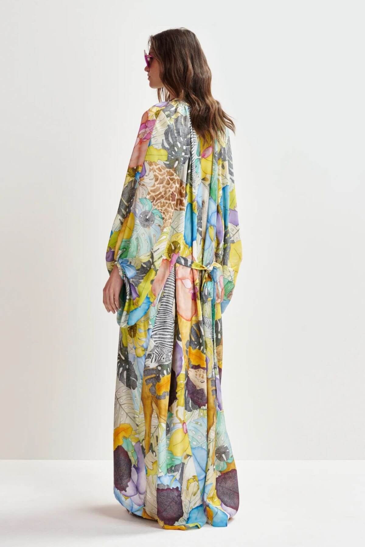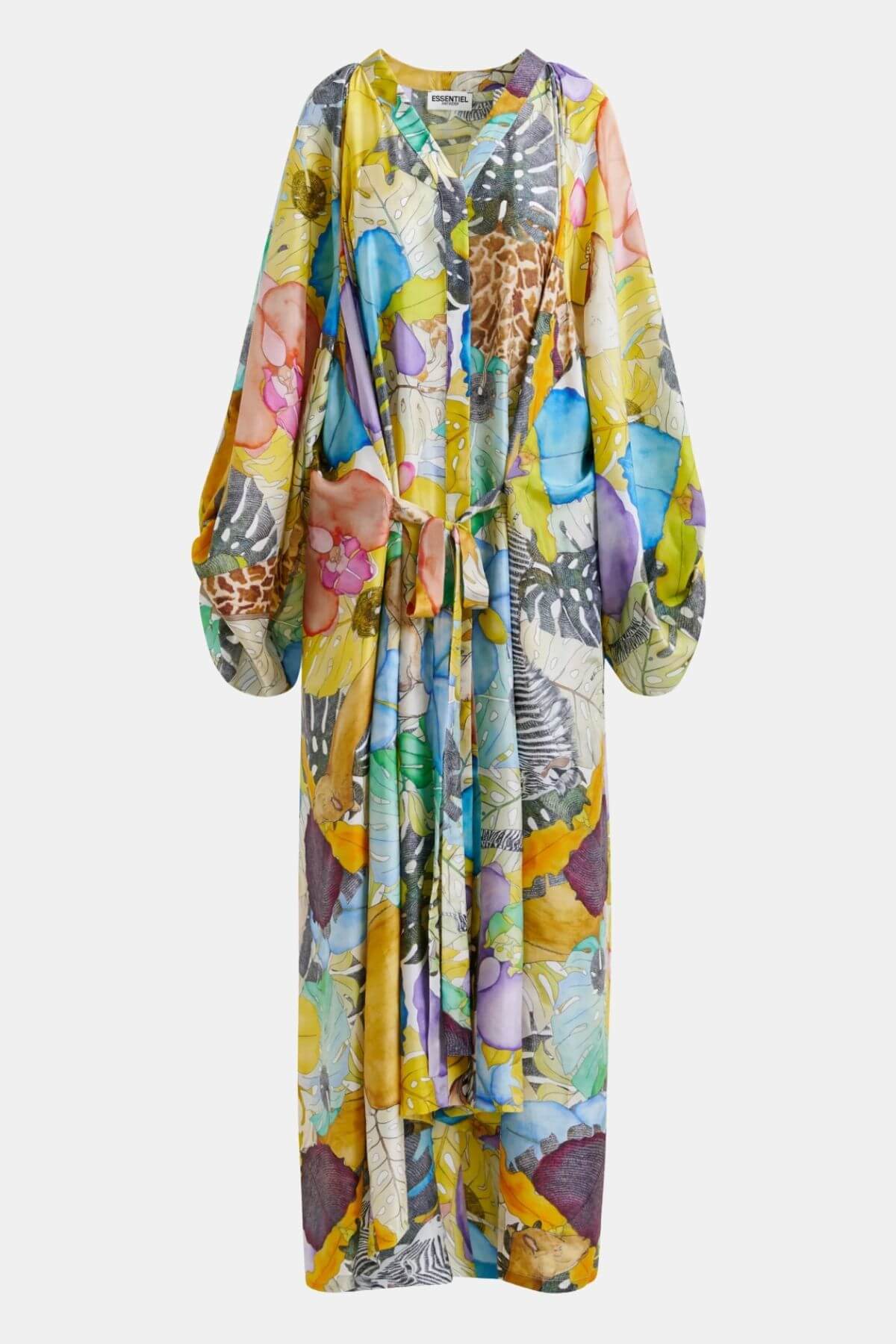100% silk maxi dress is designed for an oversized, free-flowing silhouette. Featuring raglan shoulders and voluminous sleeves, it creates a dramatic yet refined look. Panelled seams and inverted pleats add subtle structure, while slit pockets offer functionality. A self-fabric belt allows you to cinch the waist for a more defined shape. Finished with a hidden button fastening at the neckline for a seamless look.