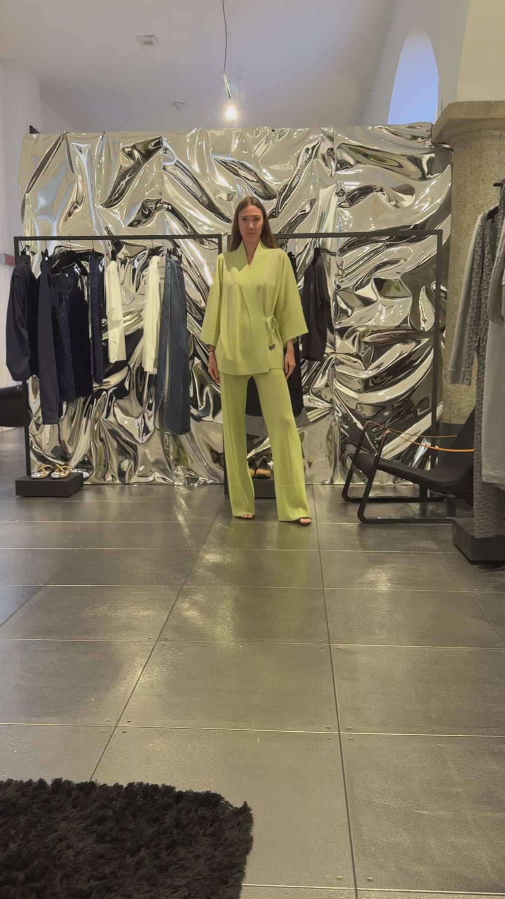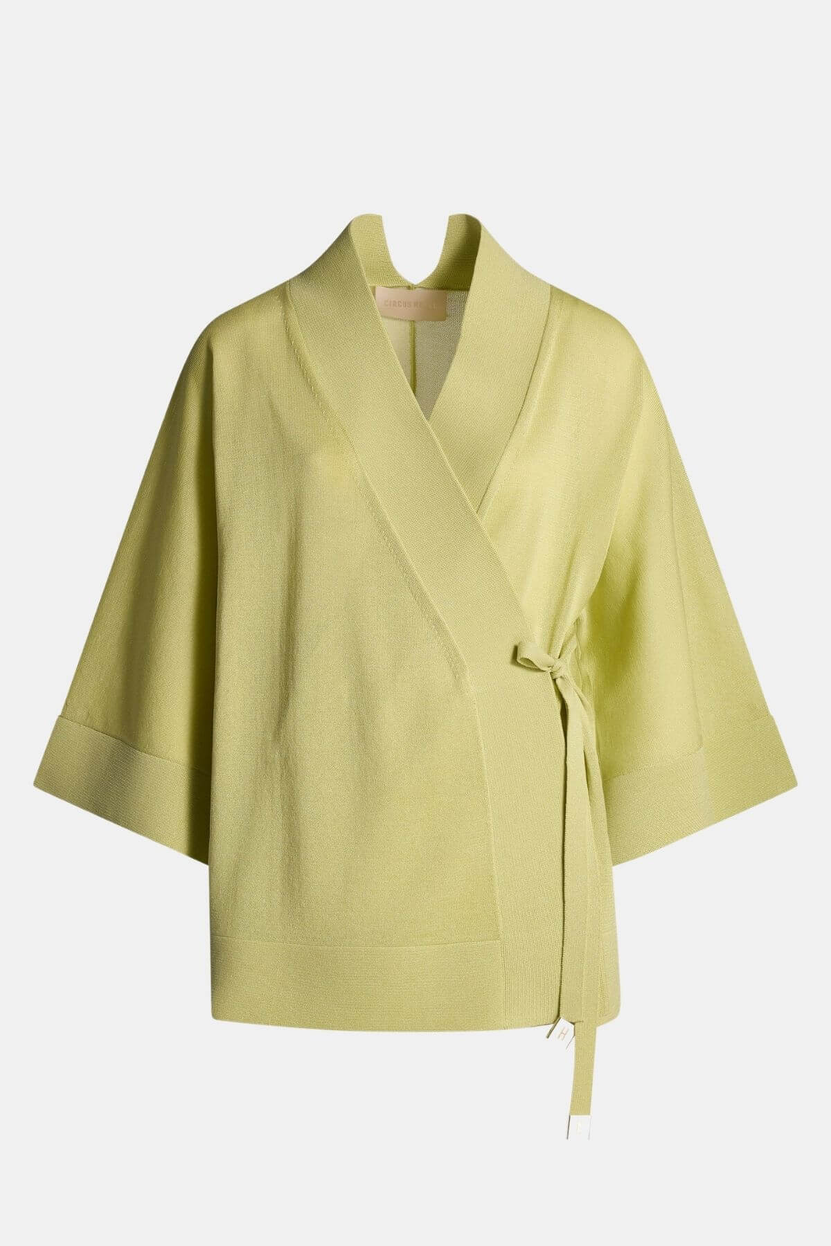 A softly draped wrap top in a relaxed, easy fit. Designed with wide short sleeves, a flattering V-neckline and an adjustable tie closure at the side for a customizable fit. Finished with clean edges and a smooth knit texture, the peppermint hue adds a fresh, modern touch.
