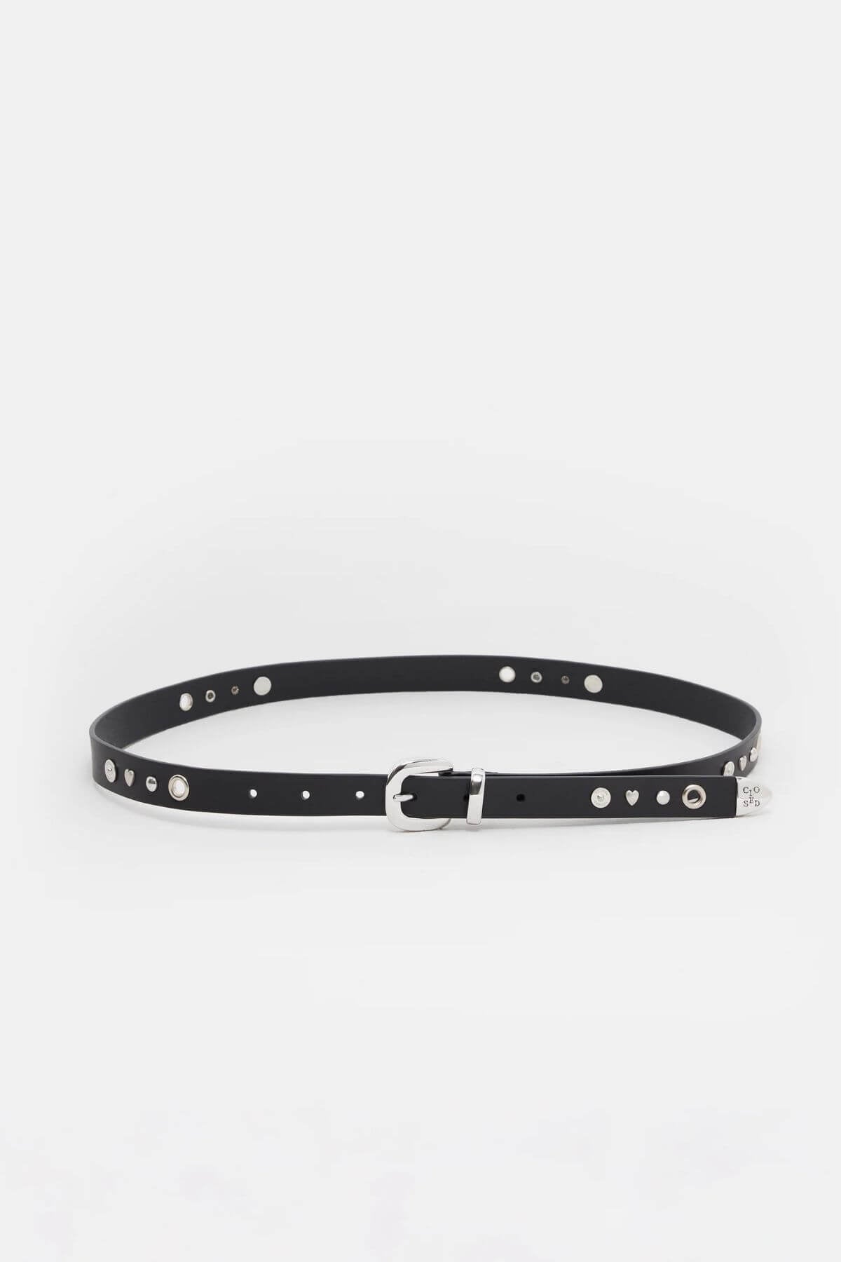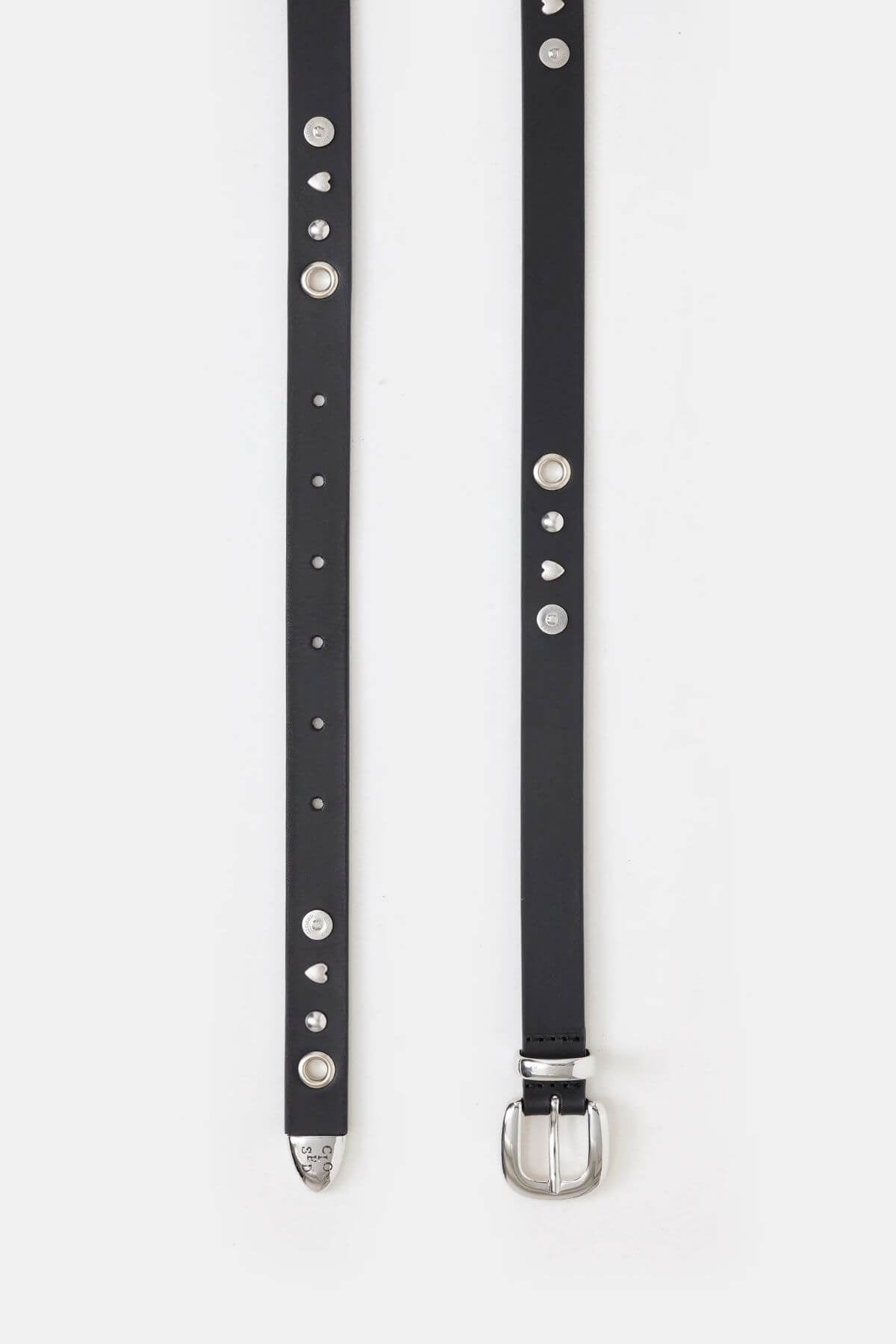 Made from Italian leather, this high-quality belt features multi-dyed edges. Characteristic features include decorative embellishments consisting of heart and denim studs, as well as logo embossing and a silver-coloured buckle. 100% made in Italy.